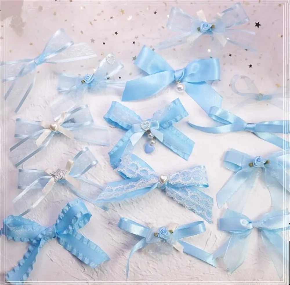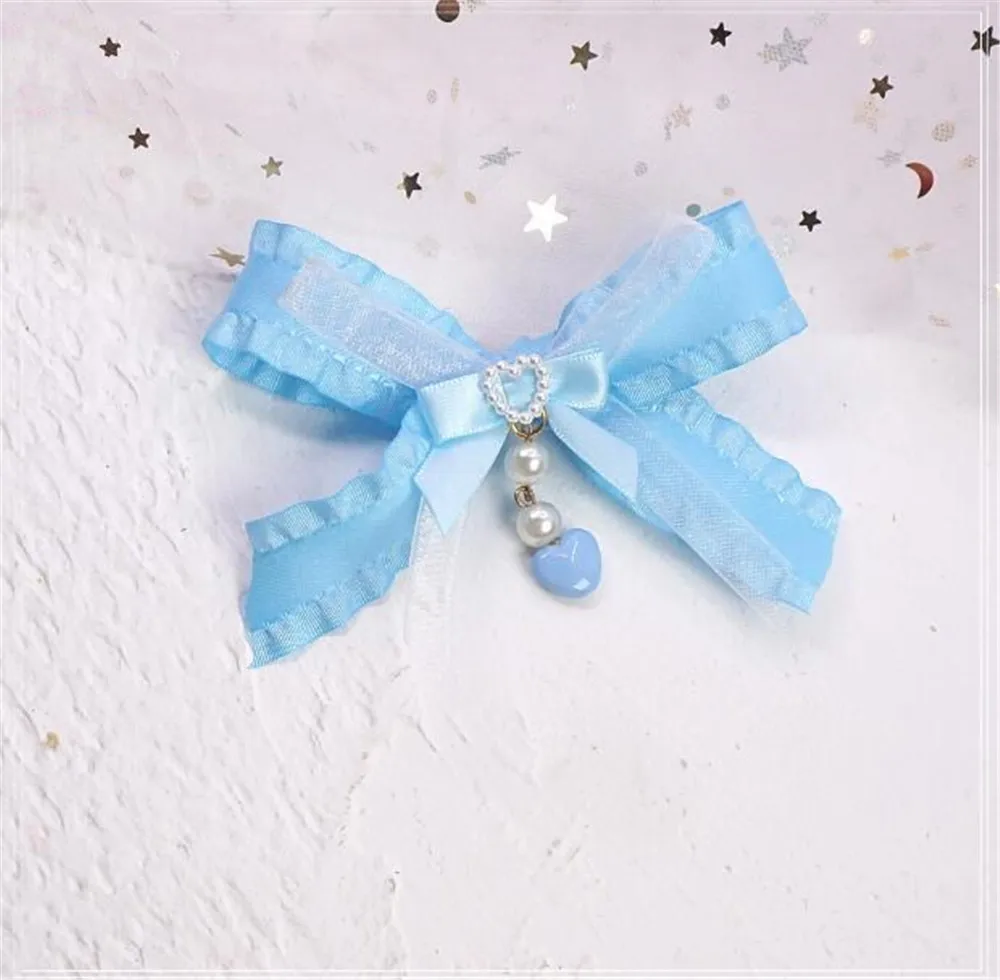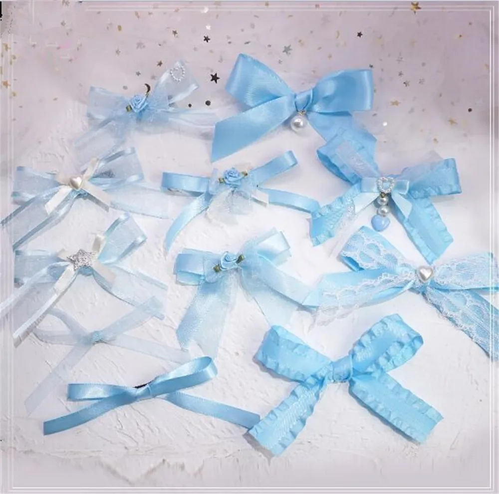 Милая девушка синий бант заколка для волос Лолита Женская кавайная заколка для волос головной убор Косплей боковая заколка B1360