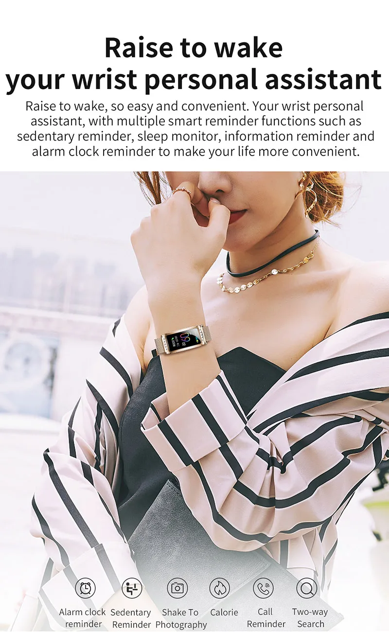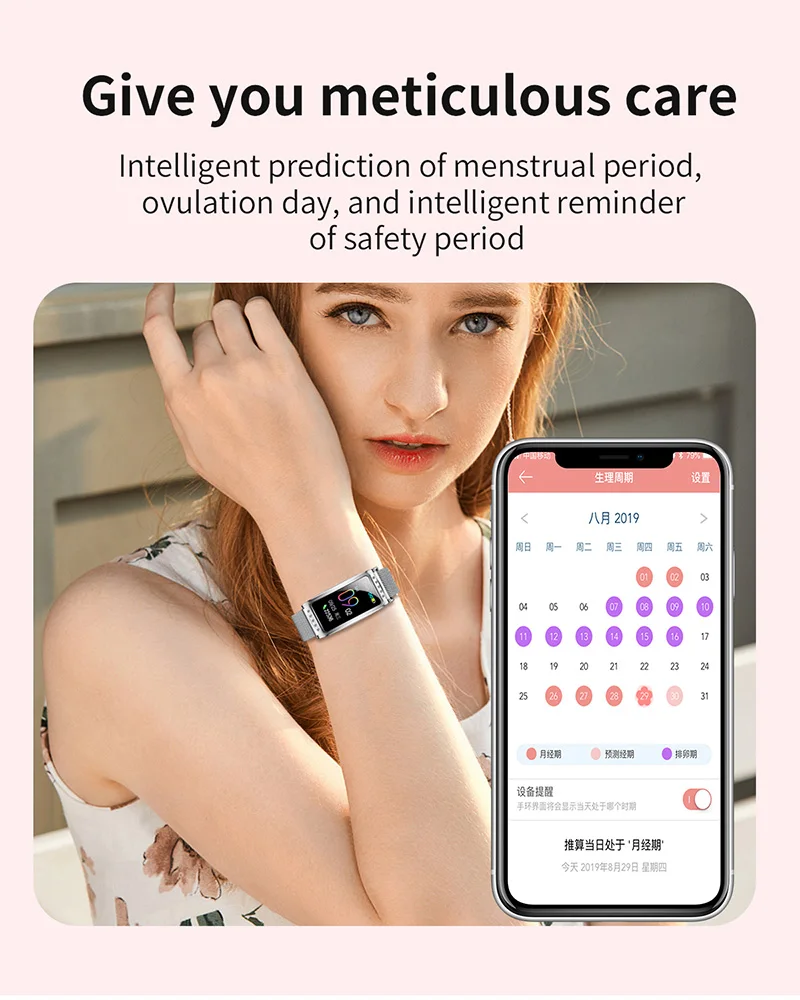 F28 женский браслет 1,08 цветной экран пульсометр Сфигмоманометр шаг физиологический цикл IP68 Водонепроницаемые Смарт-часы