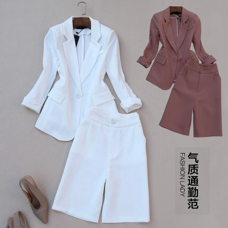 Женский костюм, весна и лето, новый стильный модный костюм, брючный костюм, женственность, для путешествий, брюки с пятью точками, Женский комплект из 2 предметов