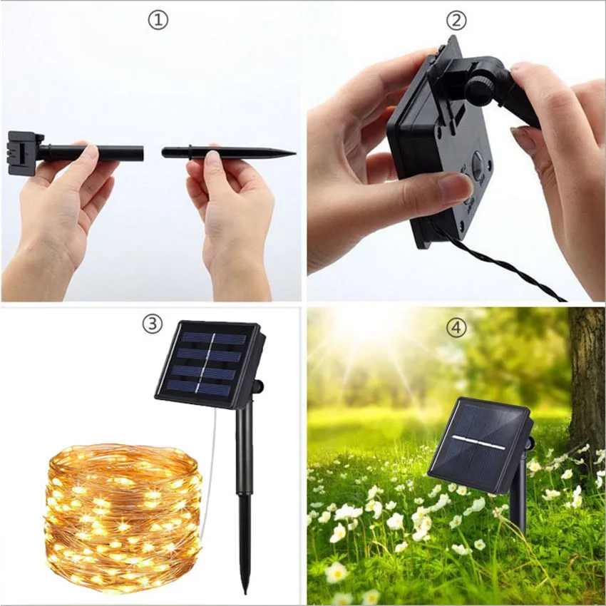 1. Водонепроницаемость: внешний вид линии был изолирован краской и солнечной панелью с уплотнением 2. Защита от солнца светильник датчика: солнечный светильник будет светильник автоматически в ночное время и выключается в дневное время 3. Режимы вспышки: 10 м только вспышка и режим включения, 4. Режимы вспышки: 20 м имеет 8 режимов вспышки, комбинация/в волне/последовательном/slo glo/погоня за вспышкой/медленное выцветание/мерцание/Постоянное включение 5. Простота установки: Этот сказочный солнечный светильник s тонкий и гибкий. Таким образом, вы можете легко создавать нужные формы, их легко хранить, светодиодный струнный светильник чудесен для наружных рождественских украшений. 6. Держите солнечную панель под солнечным светильник поглощает энергию аккумулятора 6 часов, а затем будет ярко светиться в ночное время 6-8 часов.