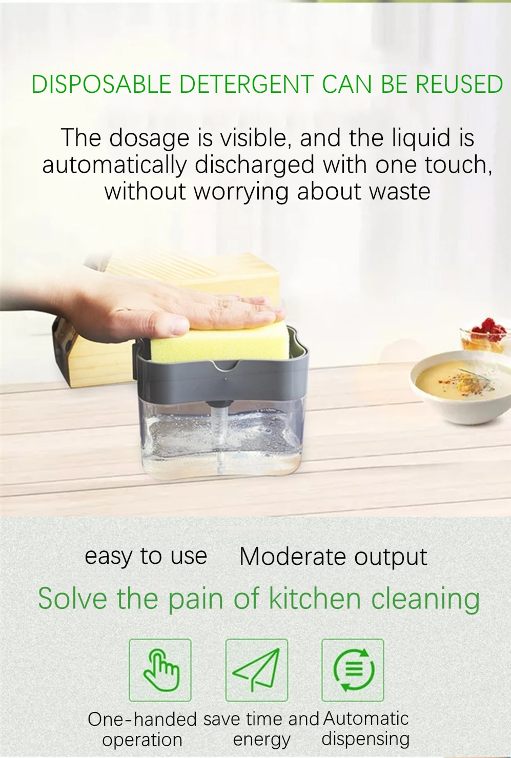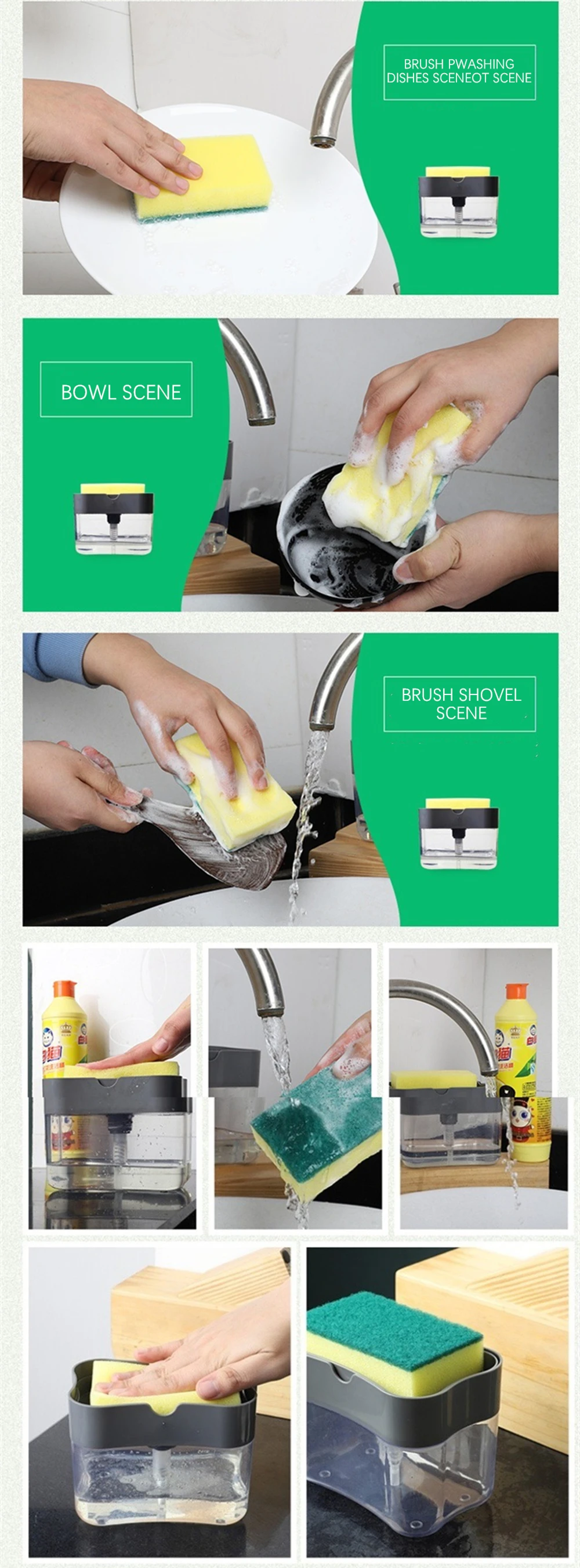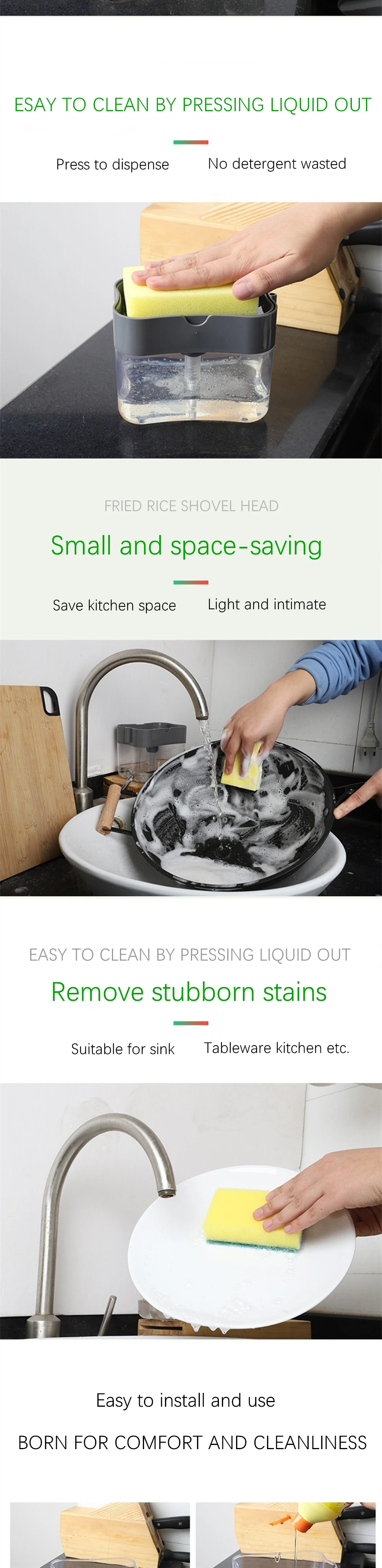 Диспенсер для кухонного мыла с губчатой стойкой пластиковое жидкое моющее средство для посуды коробка губка стойка Характеристика: Этот мыльный насос и резервуар для губки сделают мытье посуды быстрее. Налейте его вашим любимым моющим средством для посуды объемом 13 унций, затем используйте поставляемую губку, чтобы надавить на насос, который распределит нужное количество моющего средства для посуды на губку. Когда вам нужно больше, просто прокачивайте дозу мыла снова. Серый мыльный насос Больше не останавливайте и захватывайте мыльную бутылку. Также можно использовать любую другую губку или скруббер! Инновационный дизайн, высокое качество, долговечность и устойчивость к ржавчине! В отличие от других традиционных дозаторы, это 2-в-1 посудомоечная машина диспенсер мыла изготовлен из прочного АБС-пластика, прочный и стильному дизайну. Диспенсер 2 в 1 + caddy, 1 ручная работа, компактная Организация: диспенсер для раковины с caddy может положить губки, скрубберы, тряпки, И скрабы в удобном месте без воды залейте в кухонный прилавок. Точное, экономичное дозирование и большая емкость: распределите нужное количество мыла на губке, очень проста в использовании. Емкость контейнера составляет 13 унций, поэтому вам не нужно часто его заправлять. Подходит для всех видов жидкого мыла. Широкий спектр применения-наиболее подходит для домов, школ, офисов, больниц, отелей, ресторанов, заводов, аэропортов, АЗС и т. д. идеально подходит для бизнеса и общественных мест. Экономьте деньги, пространство и время! Этот диспенсер для посудомоечной машины изменит вашу жизнь на кухне, предназначен для быстрой мытья посуды, мгновенная работа сэкономит вам время, а Одноручная работа сохранит ваш уровень энергии всегда на высоком уровне. В комплект входит: 1X2 в 1 дозатор мыла и резервуар для губки 1 х Губка