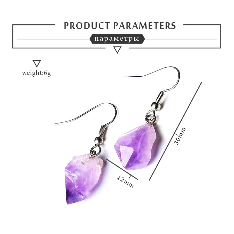 1pc natural crystal original stone amethyst earrings characteristic pendant with daily matching family gathering
