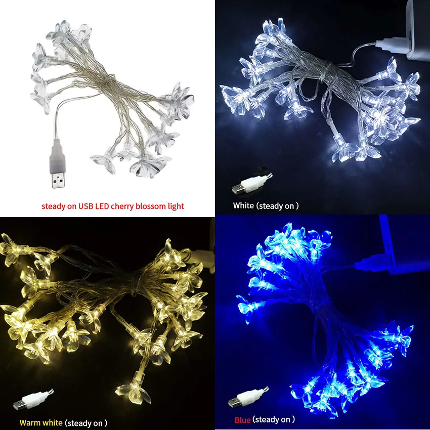 1.USB 5 в питается от банка питания, компьютера usb разъем или зарядное устройство телефона, вы можете положить его на улицу в вашем саду более удобно. Безопасное напряжение важно для вашей жизни. 2. 10 м 60led cherry blossom с пультом дистанционного управления, который имеет 16 разных цветов и 4 режима вспышки, вы можете даже установить время (6 часов и 18 часов в день). 3. Другие элементы-это просто светодиодный светильник usb с подвесками вишневого цвета и просто Постоянный режим, не может менять другие цвета и не мигать. 4. Светодиодный гирлянда с цветком вишни для сада может украсить красоту сада, сад выглядит более живым, может осветить сад, добавить новую жизнь в ночь. И могут быть украшены в этом отношении, чтобы поймать глаза людей, вечерние более блестящие, это необходимые декоративные лампы в доме. 5. Высококачественный материал. Он изготовлен из безопасного и экологически чистого материала, без элемента радиации или загрязнения. Энергосбережение и охрана окружающей среды. Светильник отличается низким энергопотреблением, экономит больше энергии и защищает окружающую среду.