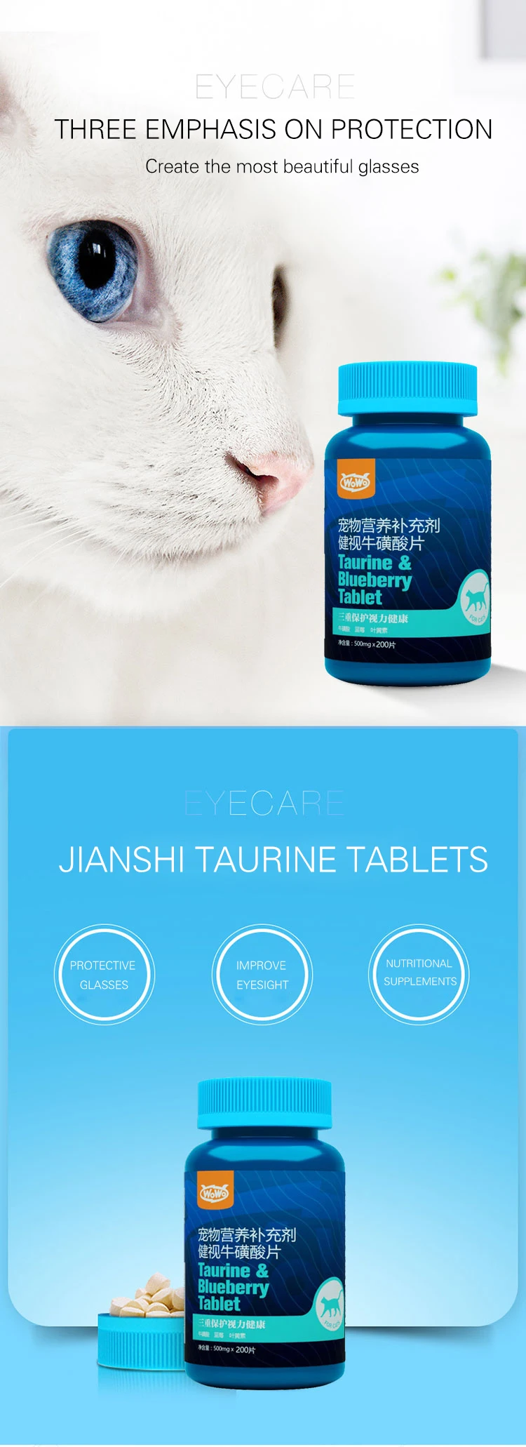 Wowo коты Таурин таблетки котята коты продукты для здоровья кошек беременность послеродовой уход за здоровьем глаз говядина ПЭТ сульфонат таблетки 200