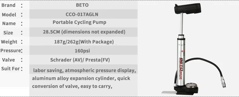 Beto портативный велосипедный насос