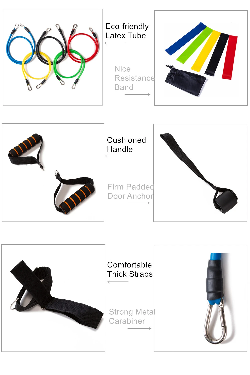 Набор 1: набор фитнес-полос включает в себя 5 трубки ленты, 2 ручки, 2 якорных лямки, 2 сумки для переноски; Набор 2: набор фитнес-браслетов включает 5 трубки ленты, 5 петель, 2 ручки, 2 якорных ремня, 2 сумки для переноски; 17 шт. набор фитнес-полос включает в себя 5 трубки ленты, 5 петель, 2 ручки, 2 якорных лямки, 2 сумки для переноски, которые помогут изменить ваши тренировки и бросить вызов себе, чтобы достичь более высоких уровней. Резистивные ленты могут быть интегрированы плавно, чтобы улучшить вашу мышечную выносливость, прочность, баланс, гибкость, осведомленность о теле и координацию. Помимо бодибилдинга и сжигания жира, фитнес-набор также полезен для реабилитации травм, идеально подходит для начинающих специалистов. Благодаря компактному размеру и легкому весу набор для тренировок, несомненно, будет удобным и гарантирует гораздо более интересную поездку. Особенности: Различные варианты обучения: набор фитнес-полос из 17 шт. состоит из 5 трубки ленты, 5 резинок сопротивления петли, 2 мягких ручки, 1 дверной якорь, 2 ремешка на лодыжке, 2 сумки для переноски. С этим полным набором для тренировок вы никогда не упустите ни единого шанса, чтобы бросить вызов различным тренировочным трудностям для укрепления сил и тонизирования мышц. Регулируемые уровни сопротивления: каждый диапазон отличается по цвету и уровням сопротивления: желтый-10 фунтов, синий-15 фунтов, красный-20 фунтов, зеленый-25 фунтов, черный-30 фунтов, С общим весом сопротивления 100 фунтов. Вы можете настроить интенсивность натяжения для достижения личных целей, применяя одну ленту или комбинируя несколько полос, идеально подходит для начинающих или профессионалов, мужчин, женщин, подростков или детей. Превосходный опыт тренировки: Изготовлен из высококачественного натурального латекса и нейлона с резьбой, резинки устойчивы к защелке и способны поддерживать Максимальное сопротивление даже после повторного растяжения и использования. Мягкие ручки и толстые подбитые лодыжки обеспечивают оптимальный комфорт и защиту во время занятий спортом. Упражнения и реабилитация: не только для ежедневной тренировки фитнеса и сжигания жира, эти полосы также широко используются для реабилитации людей, страдающих от травм ног, колена и спины, что помогает для восстановления от MCL, ACL, замена колена, коленная чашечка, Идеальный выбор для женщин, которые хотят сохранить свое тело в форме после беременности и родов. Легкий и портативный: упакован в сумку для переноски, весь комплект весит всего 2,4 фунта и легко помещается в рюкзак или портфель, поэтому вы можете заниматься спортом дома, в тренажерном зале, в офисе или в путешествиях. Характеристики: Материал: латекс + нейлон Трубки ленты: Длина: около 1,2 М/4 фута Сопротивление: желтый-10 фунтов, синий-15 фунтов, красный-20 фунтов, зеленый-25 фунтов, черный-30 фунтов Петли: Окружность: 60 см/23,62 дюйма Ширина: 5 см Сопротивление: зеленый-дополнительный светильник (10 фунтов); Синий-светильник (15 фунтов); Желтый-средний (30 фунтов); Красный-тяжелый (35 фунтов); Черный-сверхтяжелый (40 фунтов)