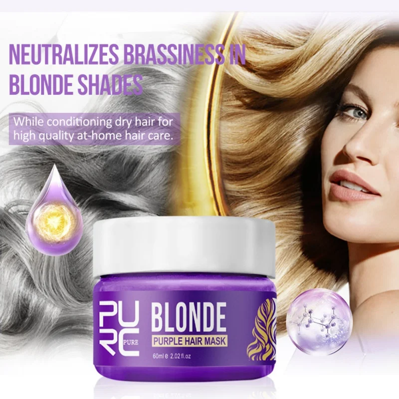 3. Маска для ухода за светлыми волосами: фиолетовая маска тонко нейтрализует отечность в светлых тонах. Благодаря кондиционированию сухих волос для ухода за волосами высокого качества в домашних условиях.
