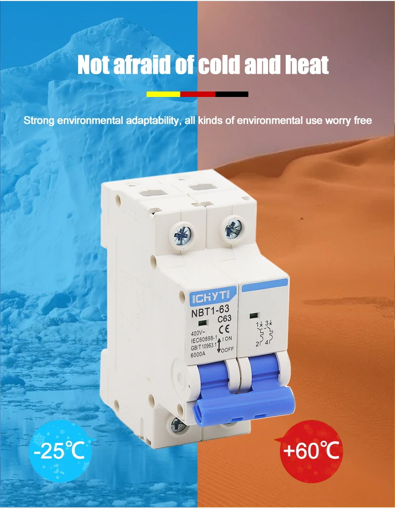 NBT1-63 цепи 2 pole 6A 10A 16A 20A 32A 40A 50A 63A 400V C типа мини-автоматический выключатель mcb Монтажная 35 мм профиль нарушение Ёмкость 6KA