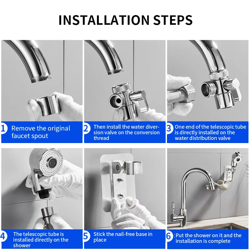 Смеситель для душа поставляется с подставкой, которую можно легко установить в подходящее положение, удобно хранить.