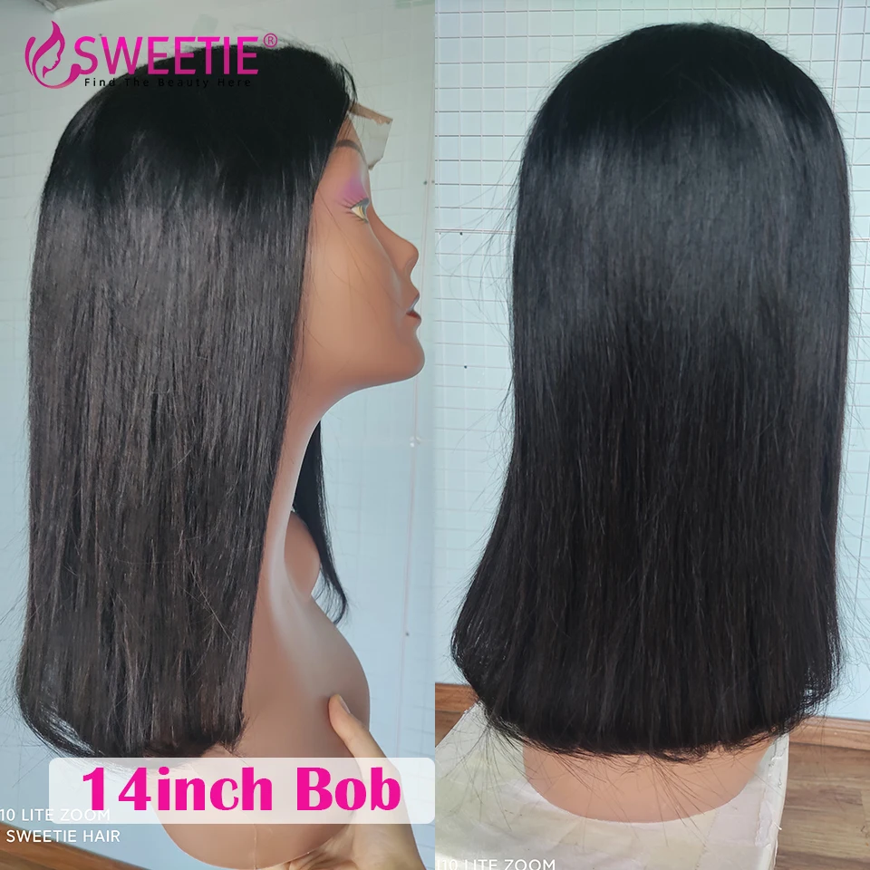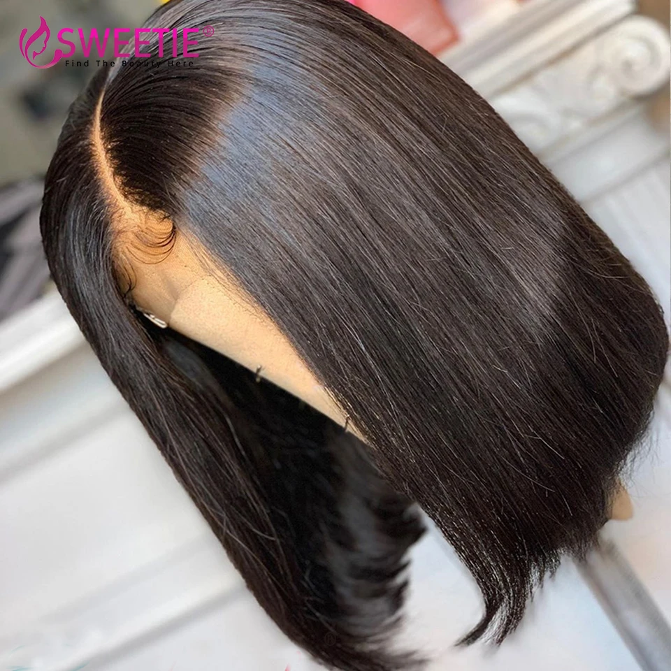 Прямые короткие парик Боб Закрытие Кружева Фронтальные человеческие волосы парики предварительно выщипывают может окрашенные и завитые