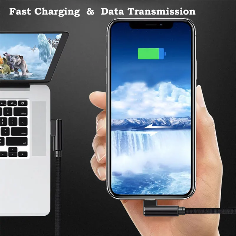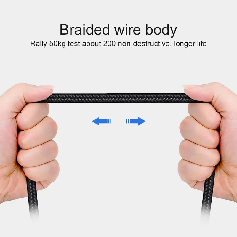 Прочный и не запутывающийся нейлоновый тканевый Плетеный usb-кабель для зарядки с ультракомпактной ступенчатой Вниз разъем может нести 4000 + испытание на изгиб, на 300% прочный, чем стандартный iPhone Lightning шнур. Может Скручивается и может выдерживать напряжение 130 фунтов.