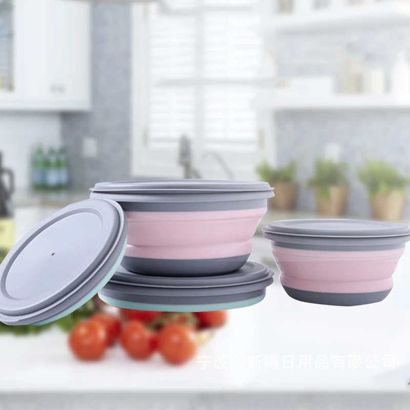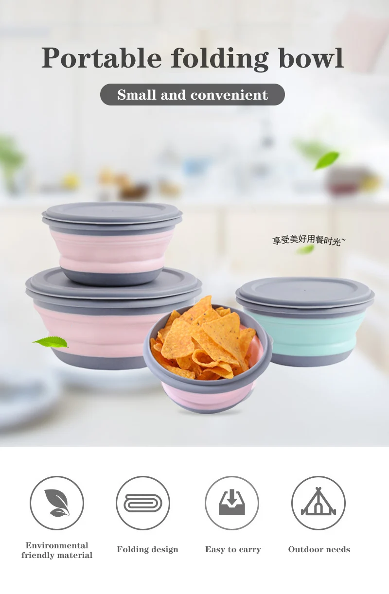 3 упаковки, силиконовая складная коробка для завтрака, коробка для хранения продуктов, портативный прямоугольный Ланч-бокс для пикника, кемпинга