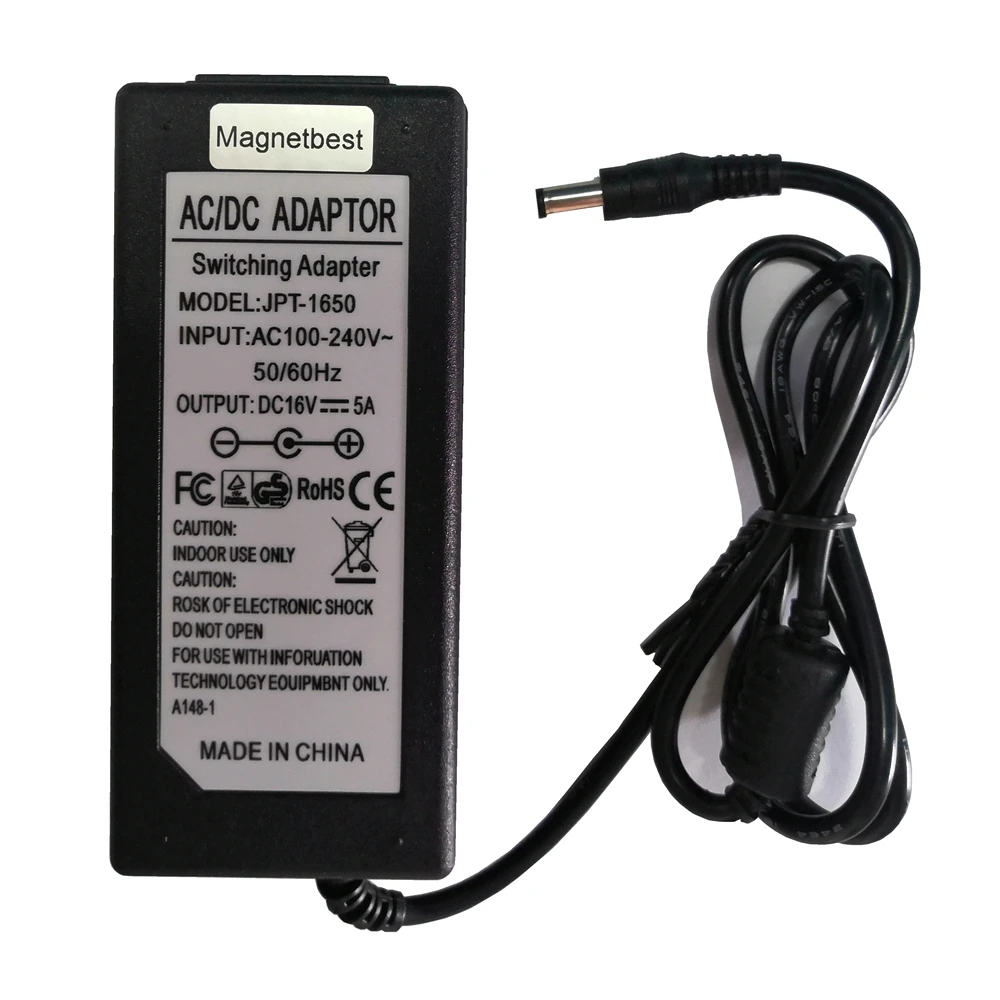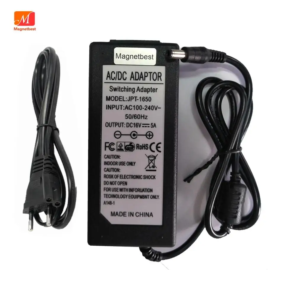 16V 5A AC DC адаптер для Светодиодный светильник CCTV динамик звук 16V 5A 80W импульсный источник питания зарядное устройство с кабелем переменного тока Характеристики: * Вход: AC 100-240V 50/60Hz 1.8A Max * Выход:16V 5A * Максимальная мощность:80 Вт * Штекером постоянного тока для подключения к Размер: 5,5*2,5 мм (внешний Диаметр: 5,5 мм. Внутренняя Диаметр: 2,5 мм) совместим с 5,5 мм x 2,1 мм * Длина кабеля около: 110 см * Разъем Адаптера: внутри положительный (+) . Внешний отрицательный (-) *С микросхемой IC:Защита от короткого замыкания, защита от перегрузки, защита от перенапряжения * Идеальная замена для 1A/2A/3A/4Aas amperage is NT forced. (Если ваш предыдущий адаптер был меньше 5А, то это будет идеальной заменой, так как сила тока не является принудительной)