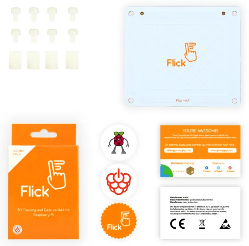 Pi поставка Flick Zero для Raspberry Pi Zero Pi Supply Flick Zero-это дополнительная плата, которая Слоты непосредственно на ваш Raspberry Pi Zero, что позволяет добавлять функции 3D отслеживания и жестов. Фликовые доски прекрасно интегрируются в ваш Raspberry Pi Zero проект, обеспечивая новые методы управления через жесты и касания. Вы даже можете скрыть свой проект за непроводящим материалом. Используя технологию жестов ближнего поля, он по-прежнему обнаруживает жесты с расстояния до 10 см, в области 3D. Это означает, что вы можете проведите рукой, коснуться пальца или нарисовать форму, и щелчок ноль будет отслеживать его для вас. Фликовые доски подключаются и воспроизводятся, поэтому вы можете вставать и работать в течение нескольких минут. Pi Supply предлагает библиотеки программного обеспечения, чтобы показать вам, что возможно, и помочь начать ваш проект. С Фликом вы можете управлять компьютерами, телевизорами, музыкальными системами и т. д. Совместимость с: Raspberry Pi Zero В комплект входит: Легко снимаются, нулю доска Монтажное оборудование (нейлоновые прокладки и винты) Pi поставить наклейки