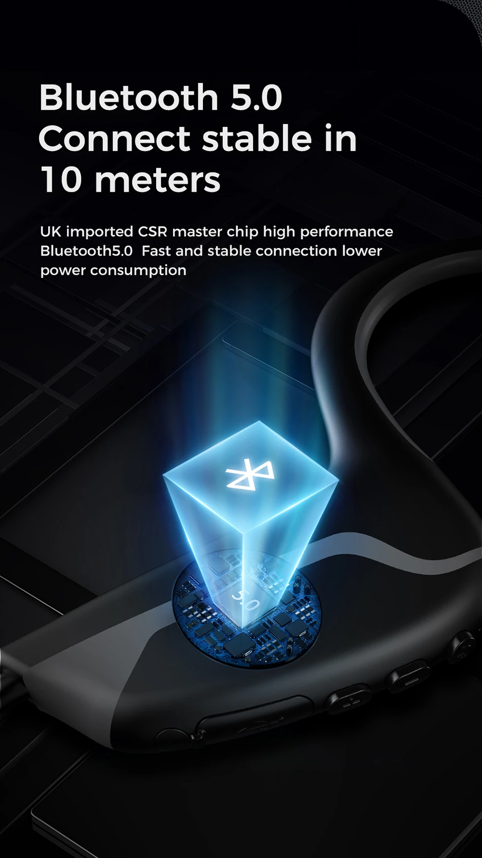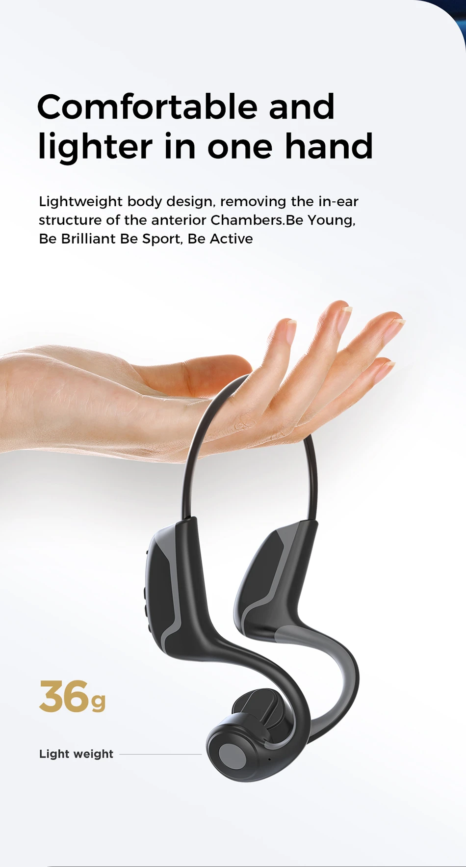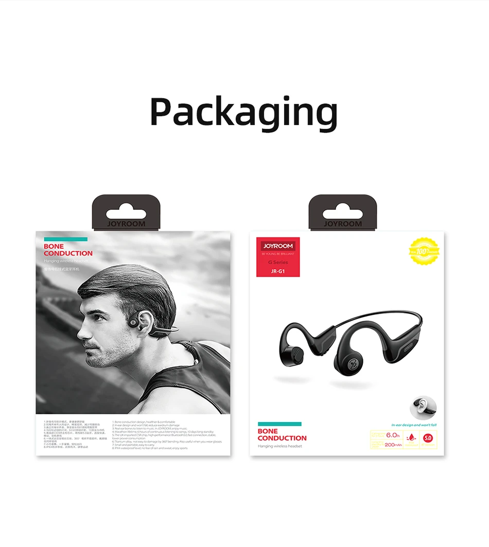 1. Новый режим прослушивания костной проводимости, более здоровый и удобный 2. Предназначен для освобождения ушей и уменьшения повреждения барабанной перепонки 3. Слушайте звуки, Наслаждайтесь музыкой и чувствуйте окружающий мир 4. Выносливость марафона, 6 часов непрерывного прослушивания, 10 дней длительного ожидания 5. Чип управления CSR импортирован из Великобритании, высокая производительность 5,0 bluetooth, быстрое подключение, стабильная, низкое энергопотребление 6. Цельный стальной провод из титанового сплава можно повесить после сгибания на 360 °, что нелегко повредить. Он также используется при ношении очков 7. Компактный и портативный, легко путешествовать 8. Гарнитура для наушников 9. Спортивные беговые наушники