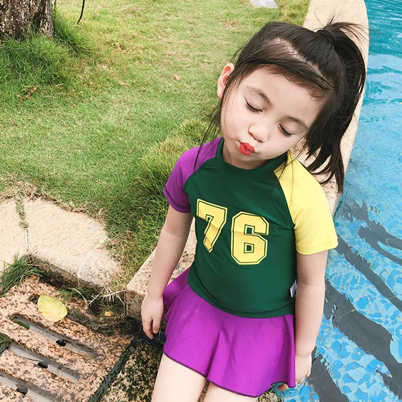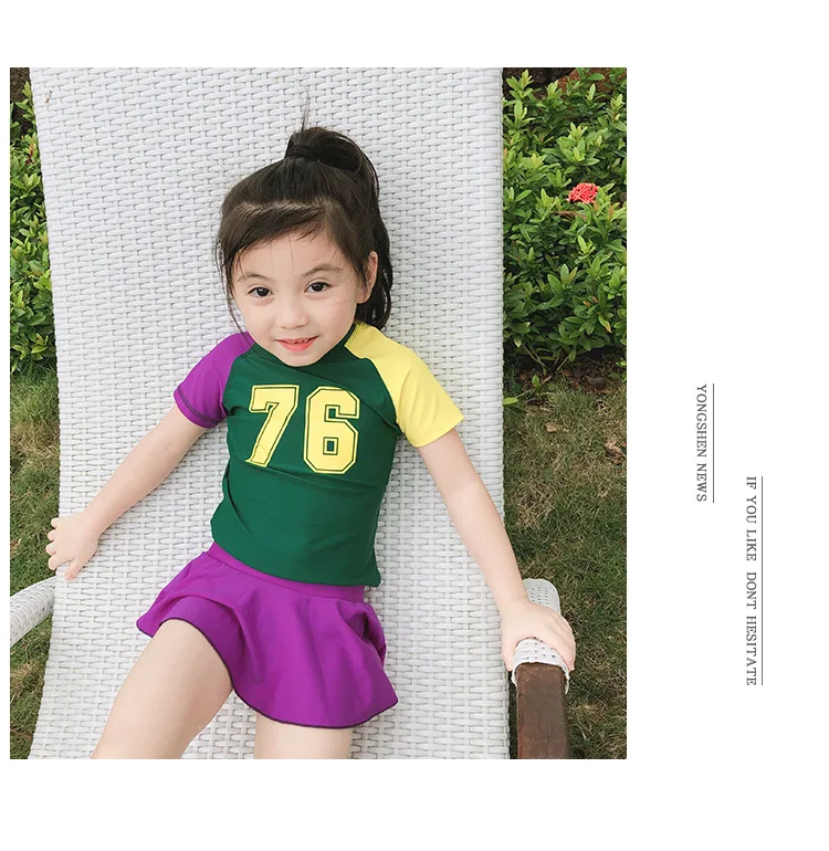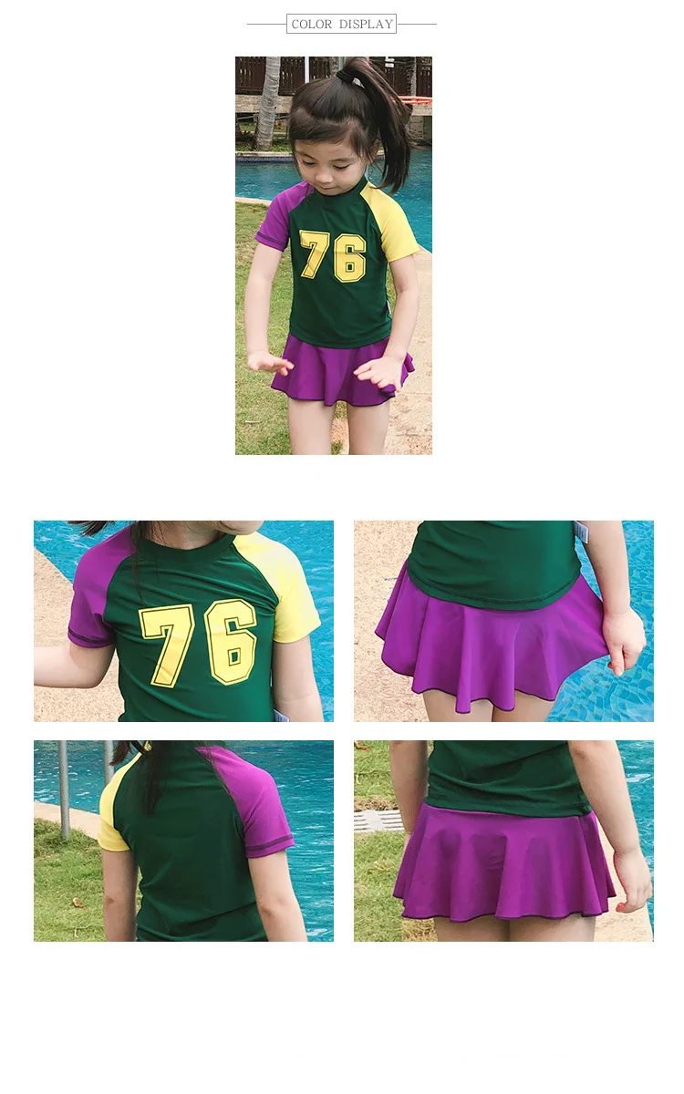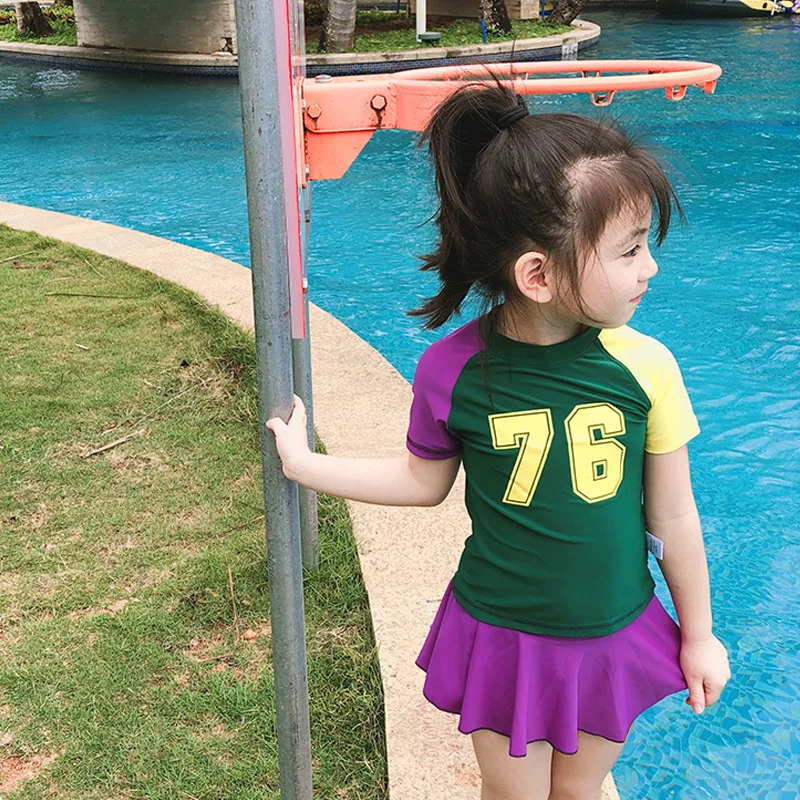 Wyoturn, анти-УФ, короткий рукав, для девочек, два предмета, купальник, летний, пляжный, солнцезащитный, детский купальник с плавательным колпачком, 76 цифр, принт