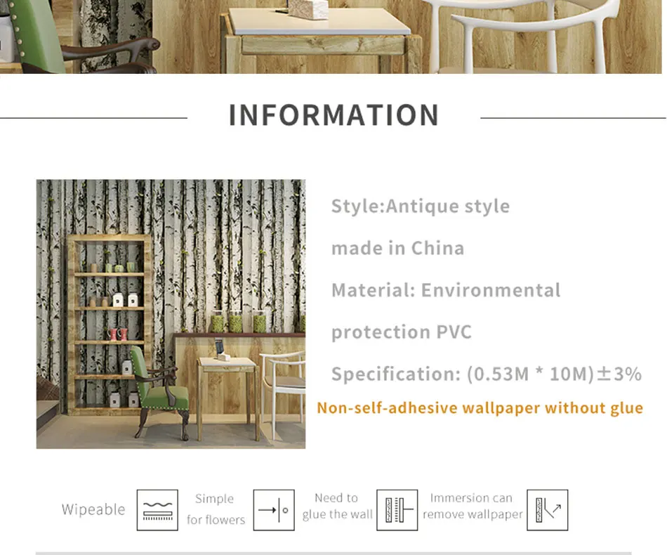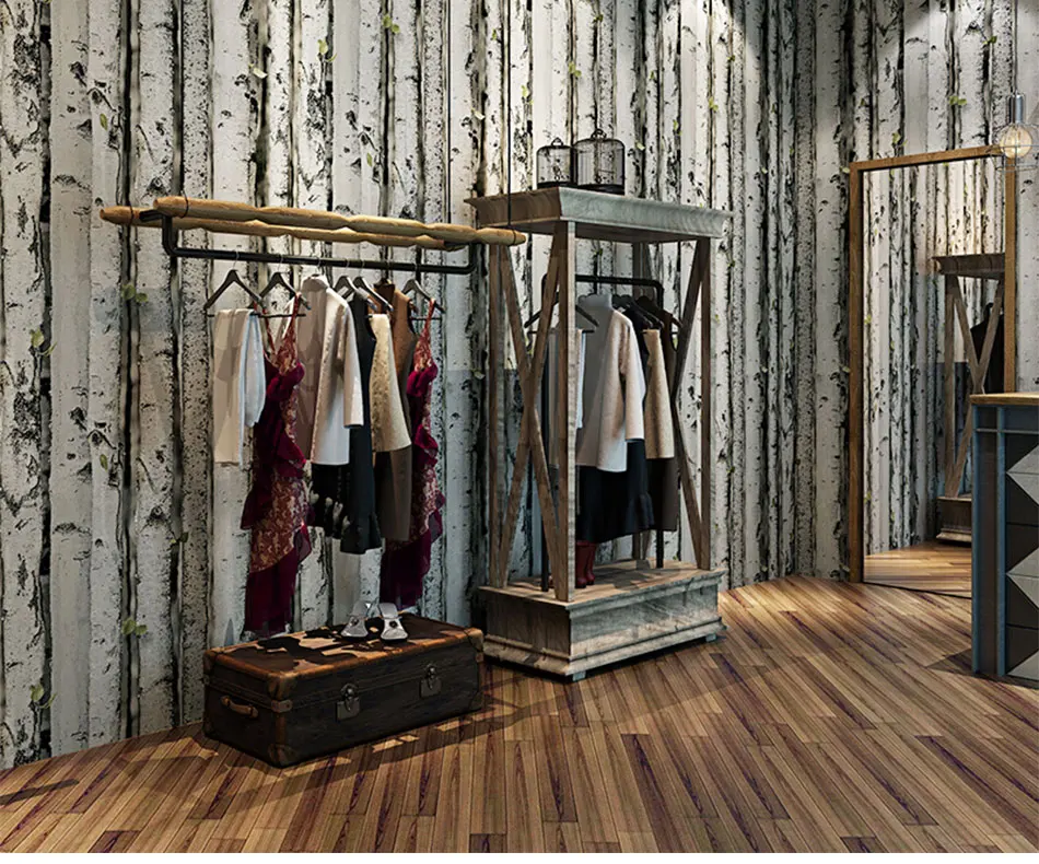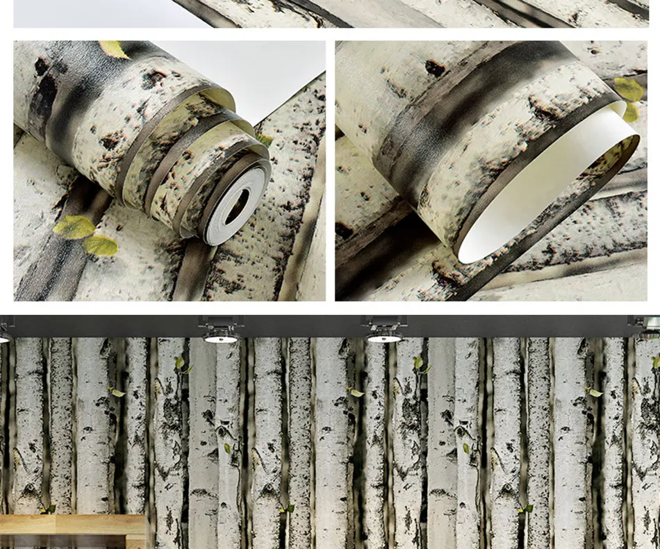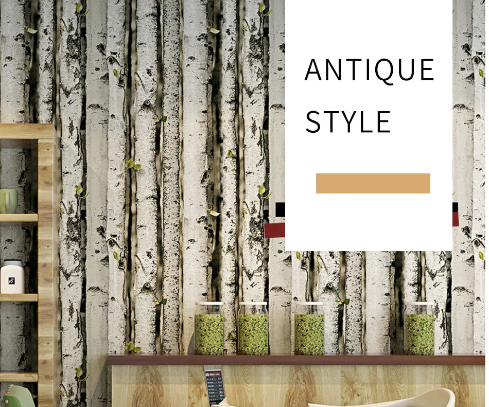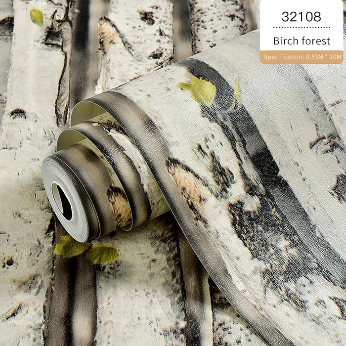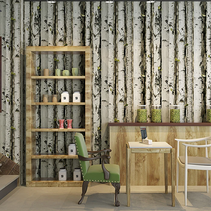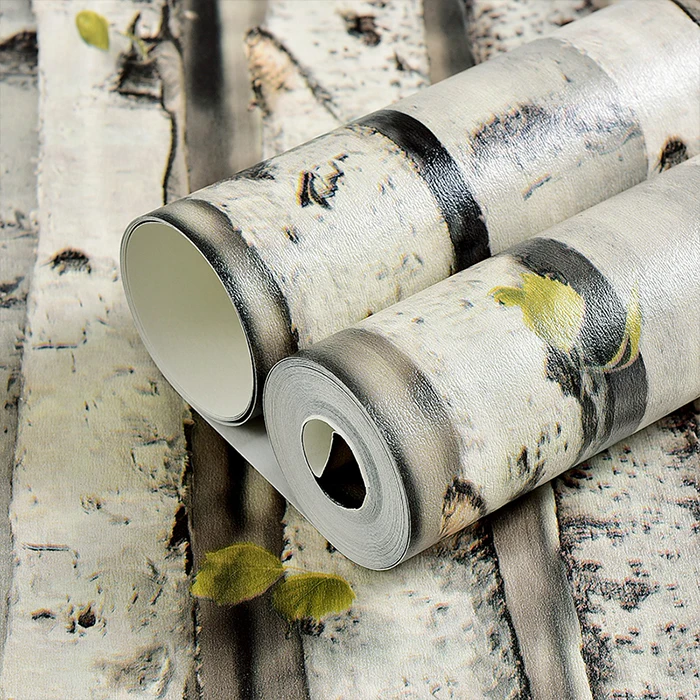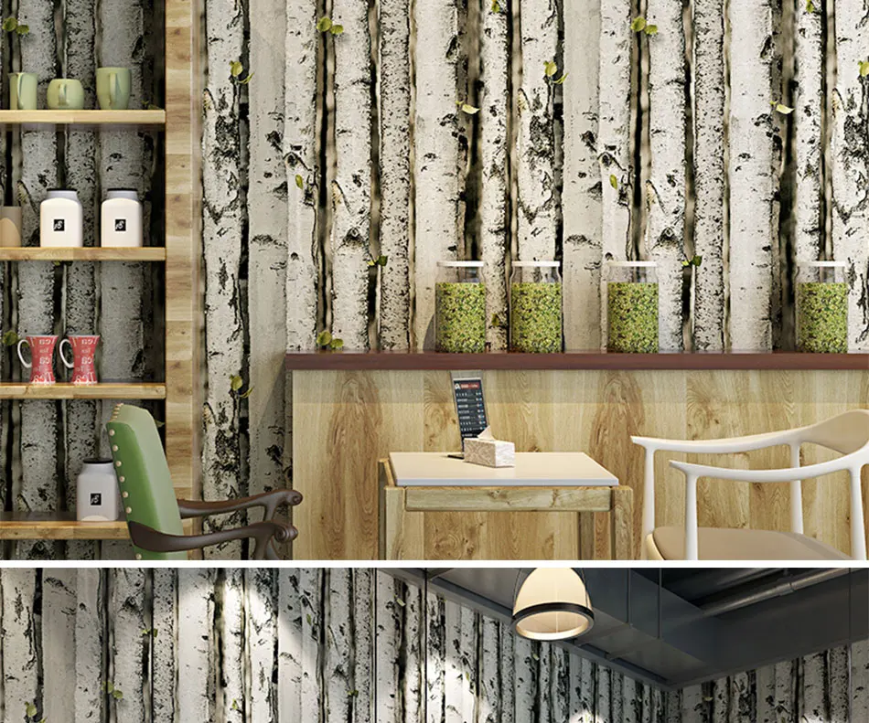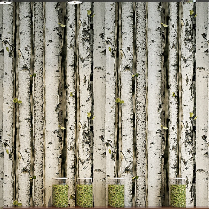 Современные обои из березового дерева и леса. Плоская печать с небольшой текстурой на фоне, выглядит так реально!
