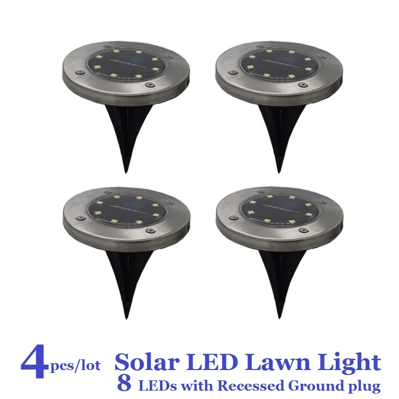 Светодиодный наземный светильник на солнечной батарее Прочная и стильная отделка из нержавеющей стали. Поставляется с автоматическим датчиком заката до рассвета. Проводка не требуется и безопасна для использования вокруг детей и домашних животных. В комплект входит литий-ионная аккумуляторная батарея емкостью 1500 ма. Идеально подходит для районов, где обычные электрические источники питания недоступны. 4/5/8/12/16 светодиодов повышенной яркости. Подходит для пешеходных дорожек, подъездных дорожек, садов, ландшафтного дизайна, вечеринок на открытом воздухе и дорожек, а также отличная покупка для домашних владельцев, ландшафтов, любителей сада и всего другого. Он с кольцом из нержавеющей стали, пластиковым корпусом и двумя заземляющими вилками для установки. Супер яркий светодиодный чип для обеспечения его яркости. Особенности: 1. Светодиоды высокого качества 2. Поликристаллические солнечные панели 3. Автоматическое освещение в ночное время 4. Водонепроницаемый, пылезащитный 5. Подземный штепсельной вилки Комплект поставки: 4 шт./лот Правильный Установка руководство 1. Рекомендуется принимать прямые солнечные лучи более 6 часов в день (включите выключатель перед зарядкой). 2. Для солнечного света, пожалуйста, выберите достаточное количество солнечного света, крыши, деревья, стекло и другие укрытия, чтобы лучше поглощать солнечный свет и хранить электричество. 3. Если лампа не подвержена воздействию солнечного света в дождливый день, это напрямую повлияет на яркость и длину лампы ночью. 4. Водонепроницаемый дизайн солнечных ламп может работать нормально, пока он не погружен в воду. 5. Солнечные лужайки имеют ограниченную мощность и яркость и могут использоваться только для ландшафтного или вспомогательного освещения. Для покупателей с высокими требованиями к яркости, они могут выбрать модели двойного назначения solar + AC. 6. Если идет дождь в течение нескольких дней, и светильник очень тусклый, вы можете временно выключить выключатель лампы, подождать два дня, а затем включить его, чтобы продолжить зарядку, что может продлить срок службы батареи.