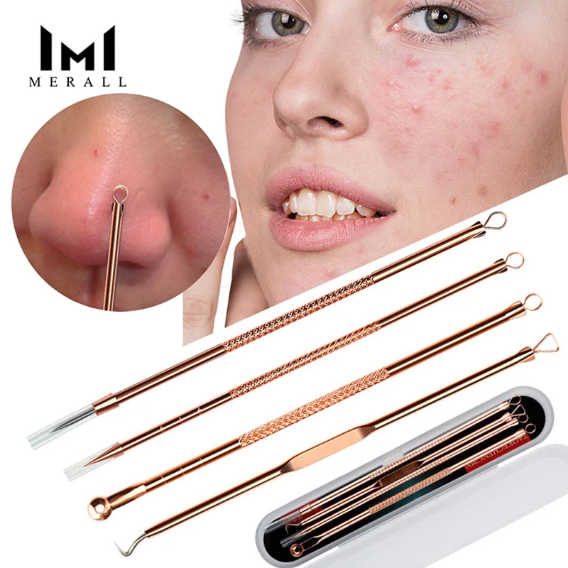 MERALL 4 шт./компл., средство для удаления угрей Комедон, прыщей, черных точек, ложка для лица, средство для ухода за кожей лица, иглы для очистки пор лица