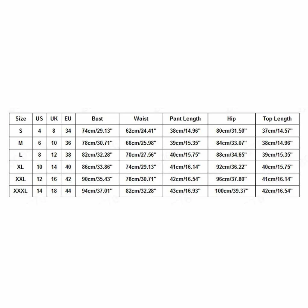 | Размер | США | Великобритания | ЕС | Бюст | Талия | Длина брюк | Бедра | Длина верха |