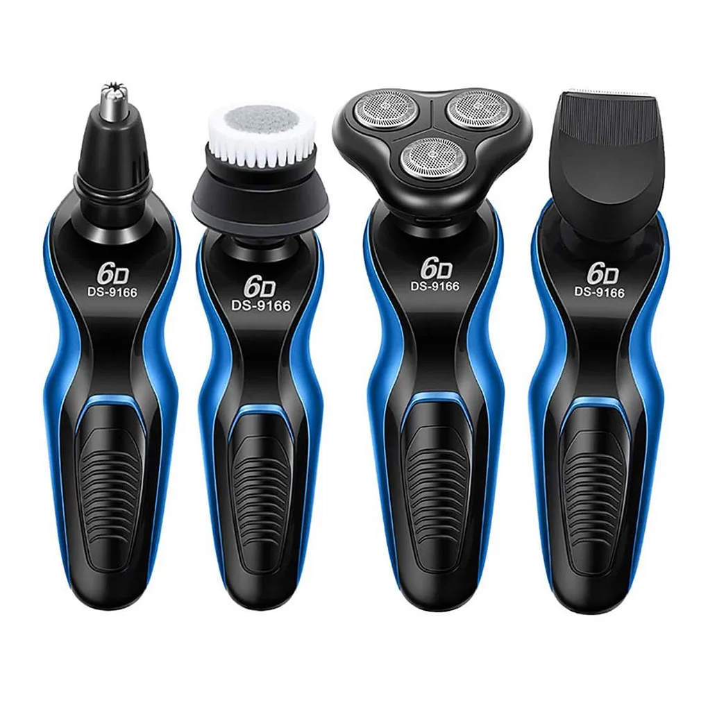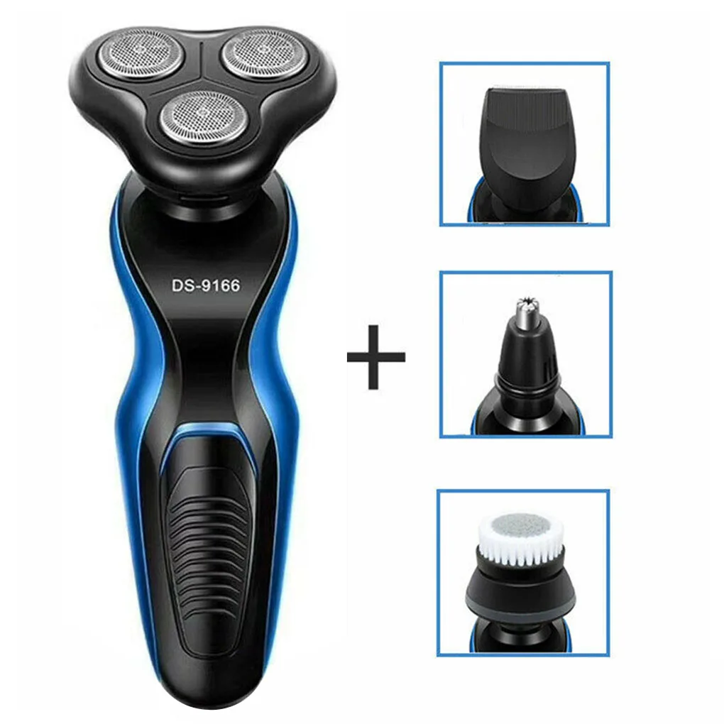 Эта аккумуляторная бритва для бороды содержит бритву для бороды, Очищающую щетку, устройство для бакенбардов и машинку для стрижки волос в носу.