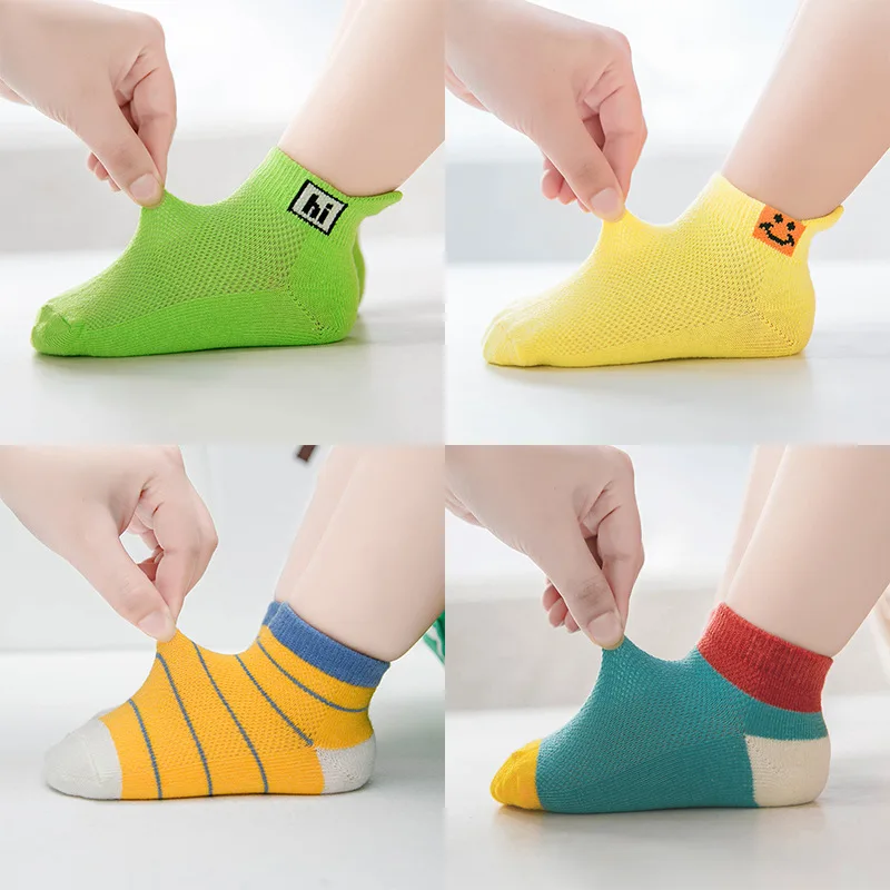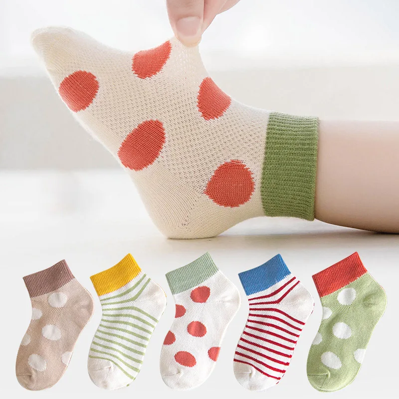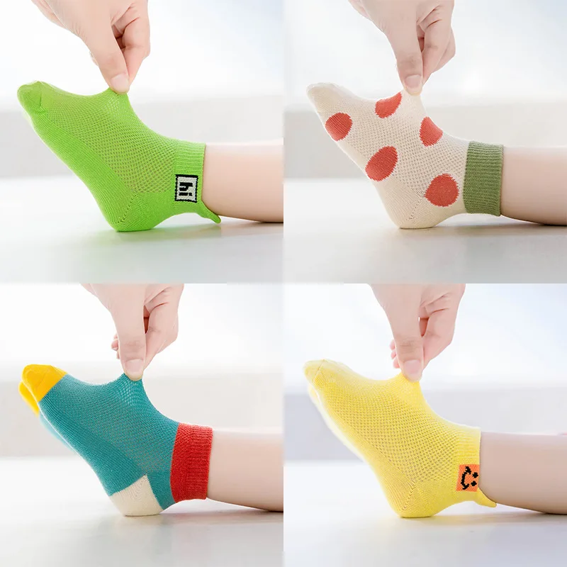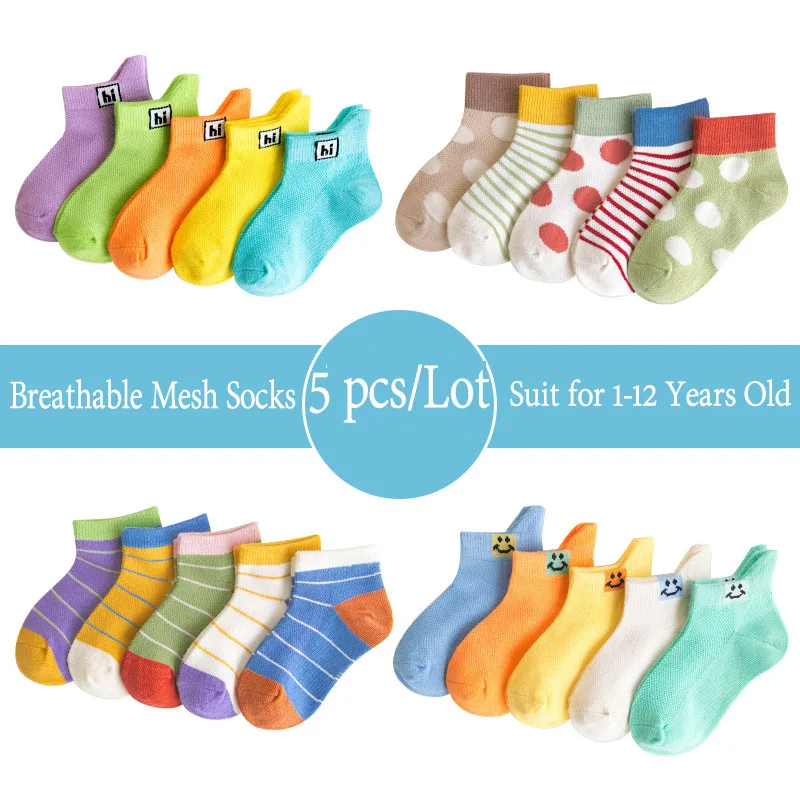 Материал: хлопковые детские носки Размер: подходит для детей 0-12 лет Рисунок: милые Мультяшные детские носки Пол: детские носки для маленьких мальчиков и девочек Преимущества: дышащие детские носки Особенности: мягкие сетчатые детские носки Посылка: 5 пар/лот детские носки Сезон: весна, лето, осень; Детские носки