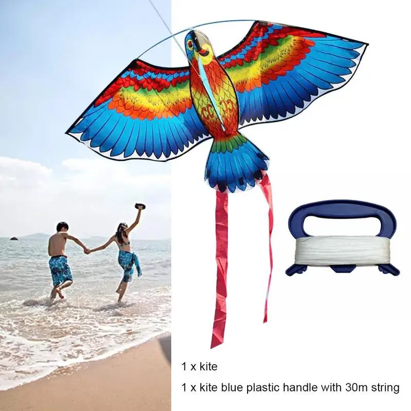 1,1 м плоский воздушный змей «попугай» с 30 метровой одиночной линией на открытом воздухе Веселые летающие воздушные змеи в форме птиц игрушка для детей подарок открытый воздушный змей «попугай» летающие игрушки