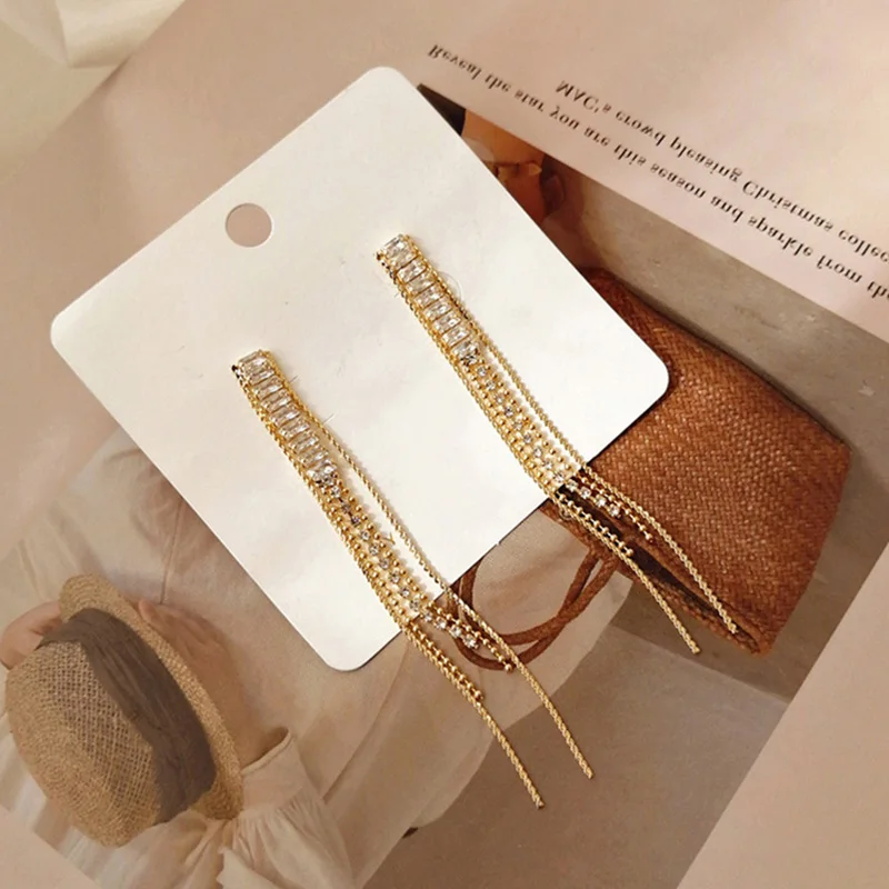 Корейские модные серьги-гвоздики с кисточками и стразами, женские серьги золотого цвета, модные ювелирные изделия, оптовая продажа 2020