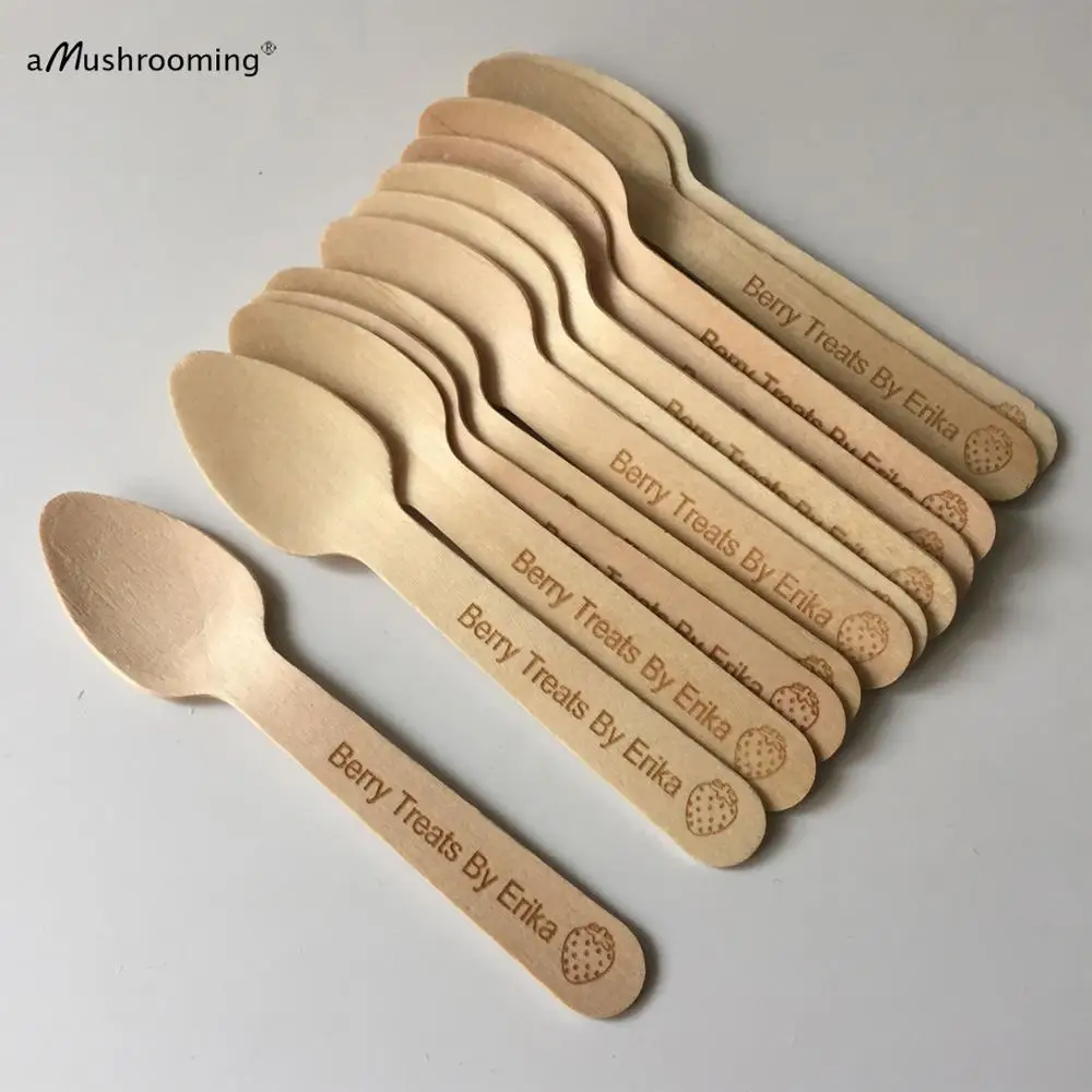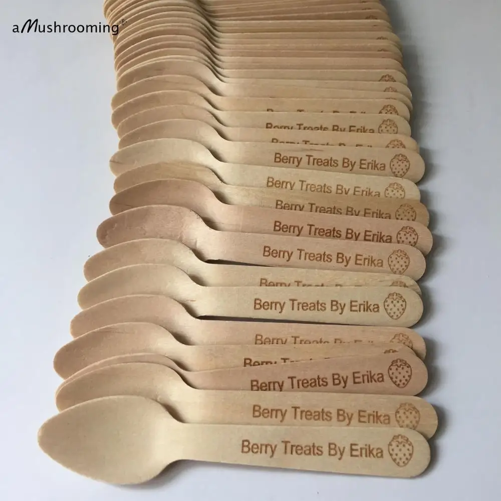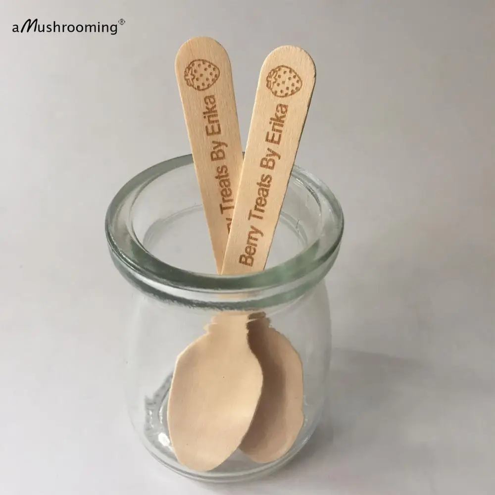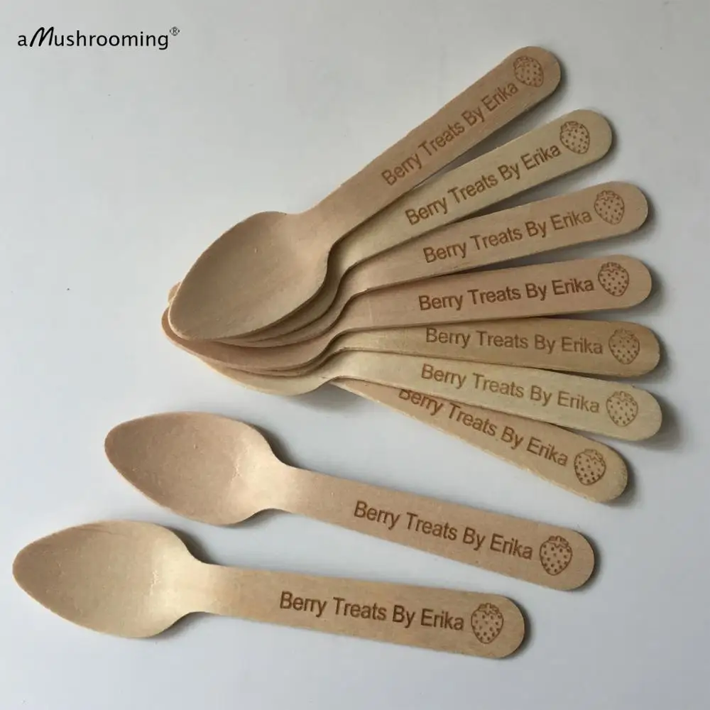 Деревянные Мини-ложки с монограммой и клубничной гравировкой для домашнего сада, вечерние Десертные Ложки для кофе, чайные ложки