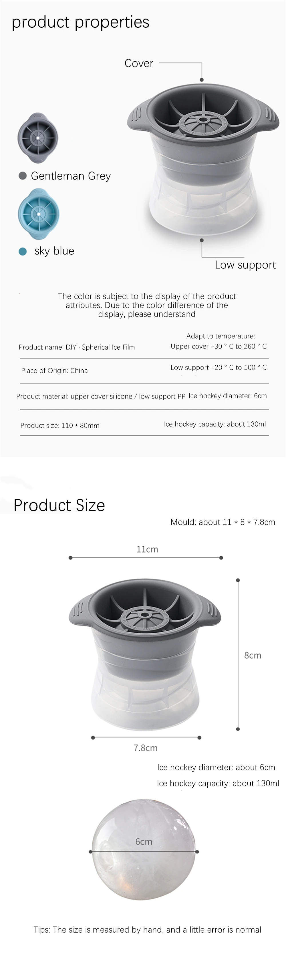 Описание: Материал: силикон Цвет: черный, синий Размеры: 11*8*7,8 см (ледяного шара: 6 см в диаметре) Упаковка: Opp Количество пакетов: 1 * форма для льда Особенности: 1. Высококачественный пищевой силикон и ABS материалы безопасны, гигиеничны, здоровы и экологически безопасны. 2. Прост в использовании, прост в эксплуатации и прост в чистке. 3. Антипригарная форма, не легко отвалится. 4. Простота в эксплуатации, с крышкой, не нужно беспокоиться о том, что жидкость наполнит всю форму кубиками льда. 5. Форма для льда может использоваться повторно, не прилипая к поверхности, не прикасаясь к льду обеими руками, что является более гигиеничным. Посылка включает в себя: 1 * форма для льда Примечание: Возможны ошибки в измеренных вручную размерах. В пределах ± 1 см фактические размеры должны основываться на фактическом объекте. Из-за различных условий освещения и съемки цвет изображения может отличаться от фактического продукта. Пожалуйста, ознакомьтесь с фактическим товаром.