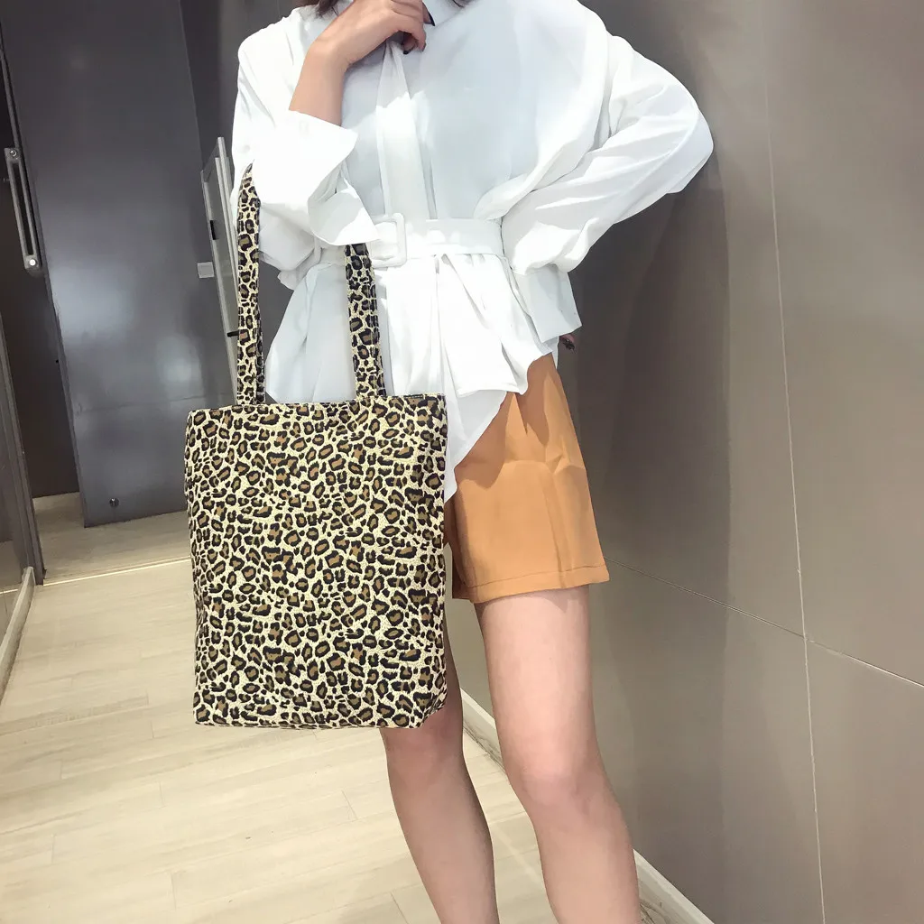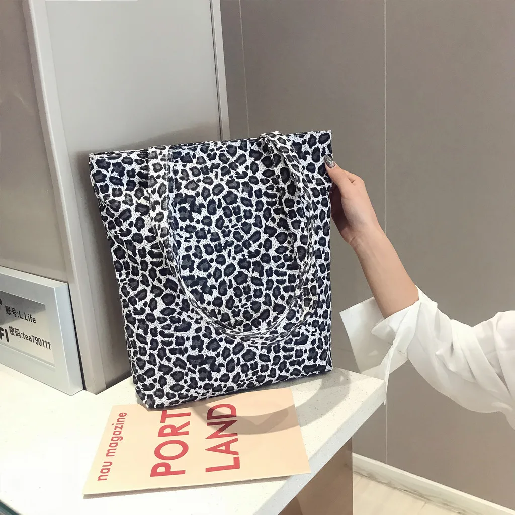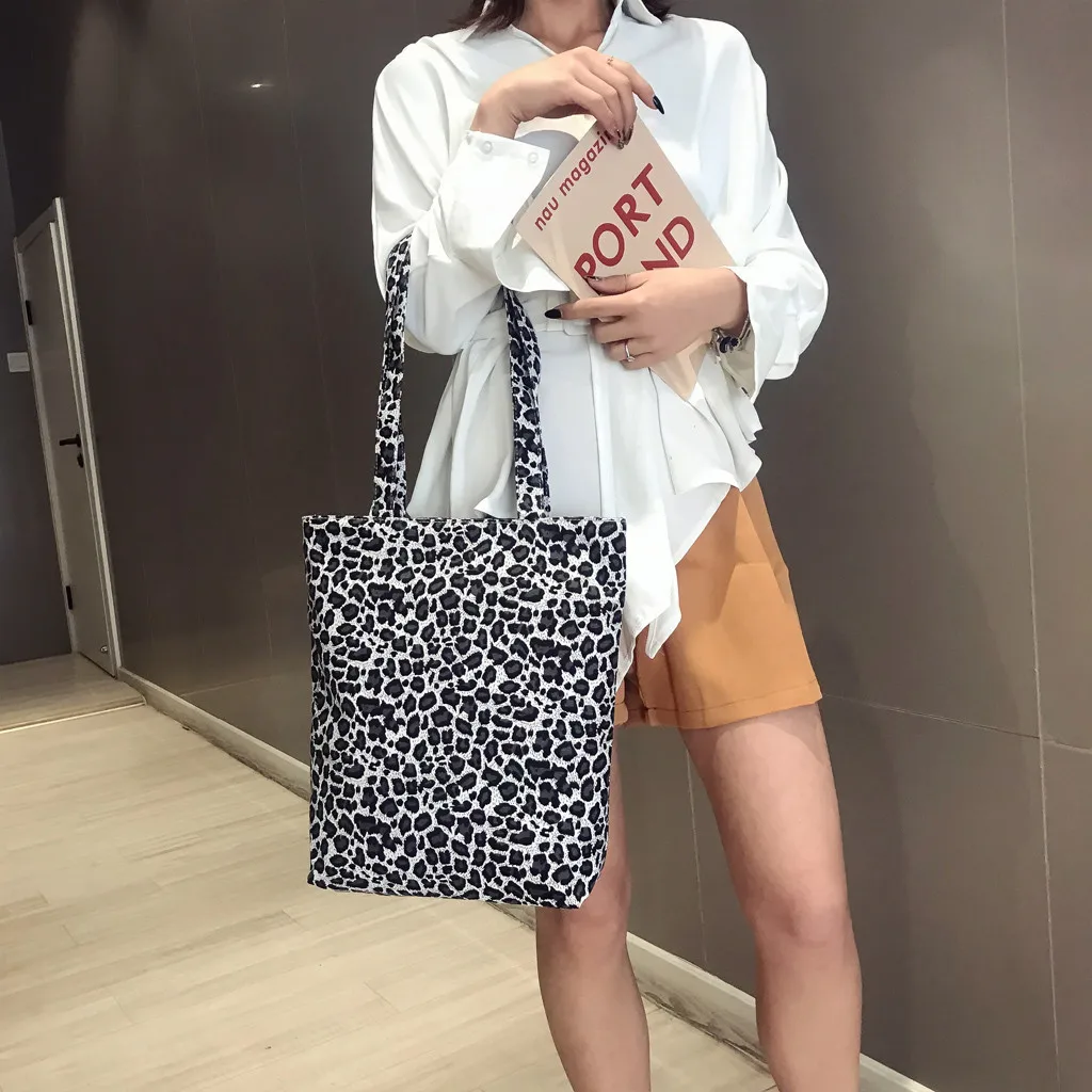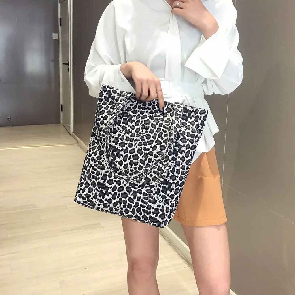 Женская Холщовая Сумка с леопардовым принтом, Женская Повседневная сумка на плечо, складные сумки для покупок, летняя пляжная сумка, женская сумка