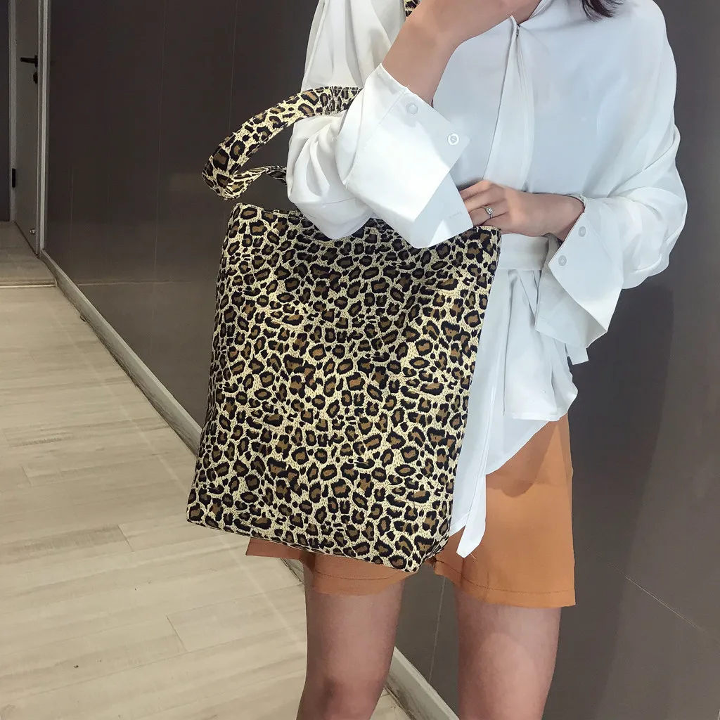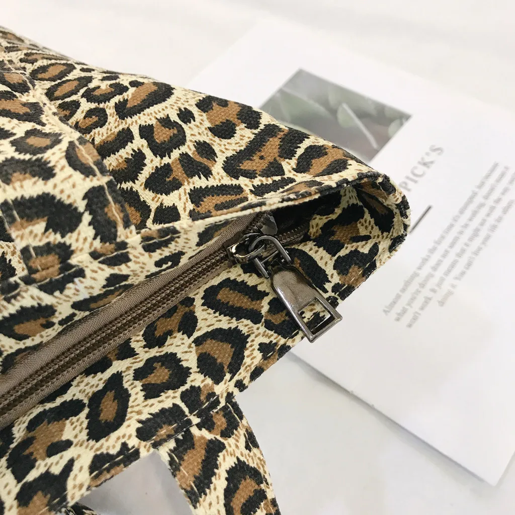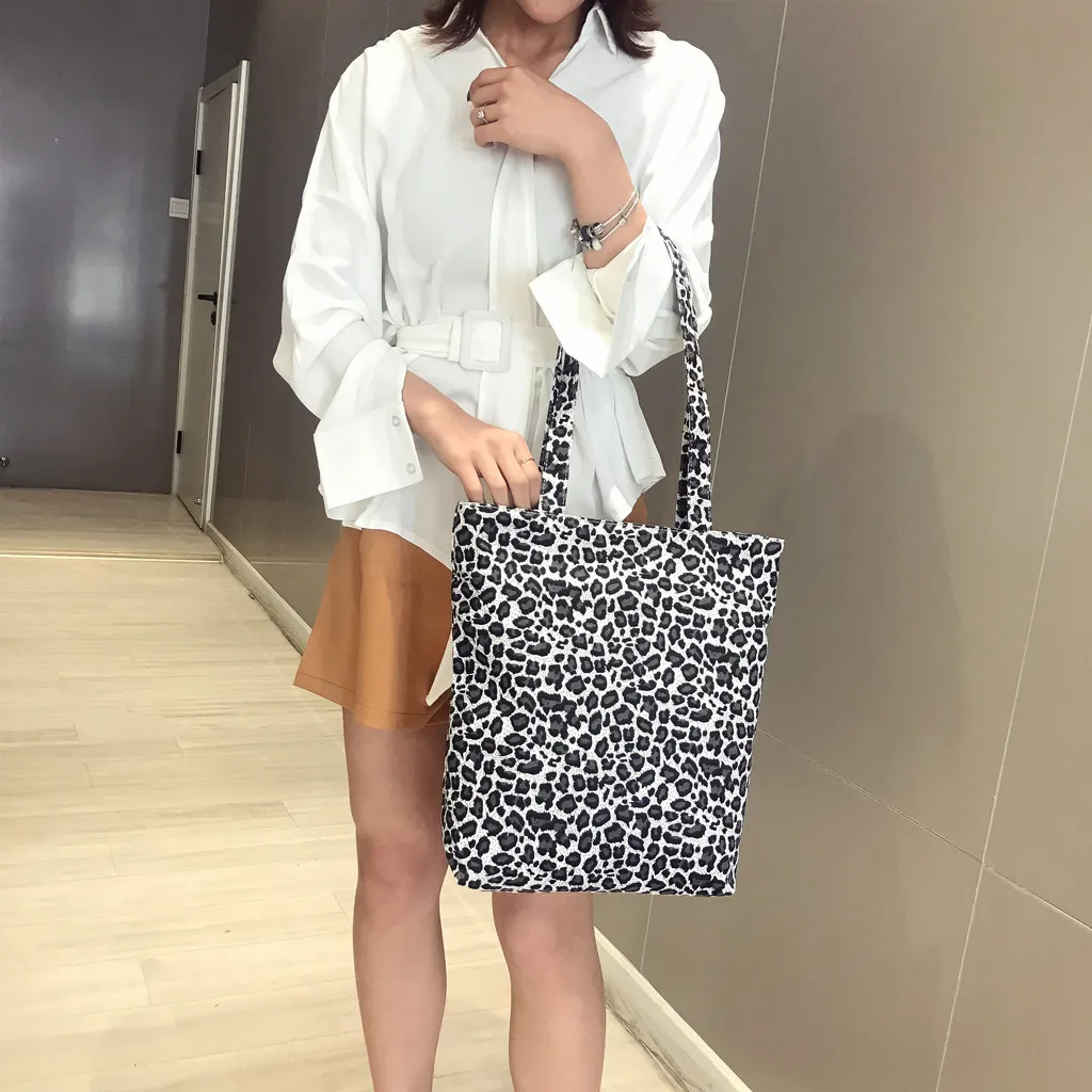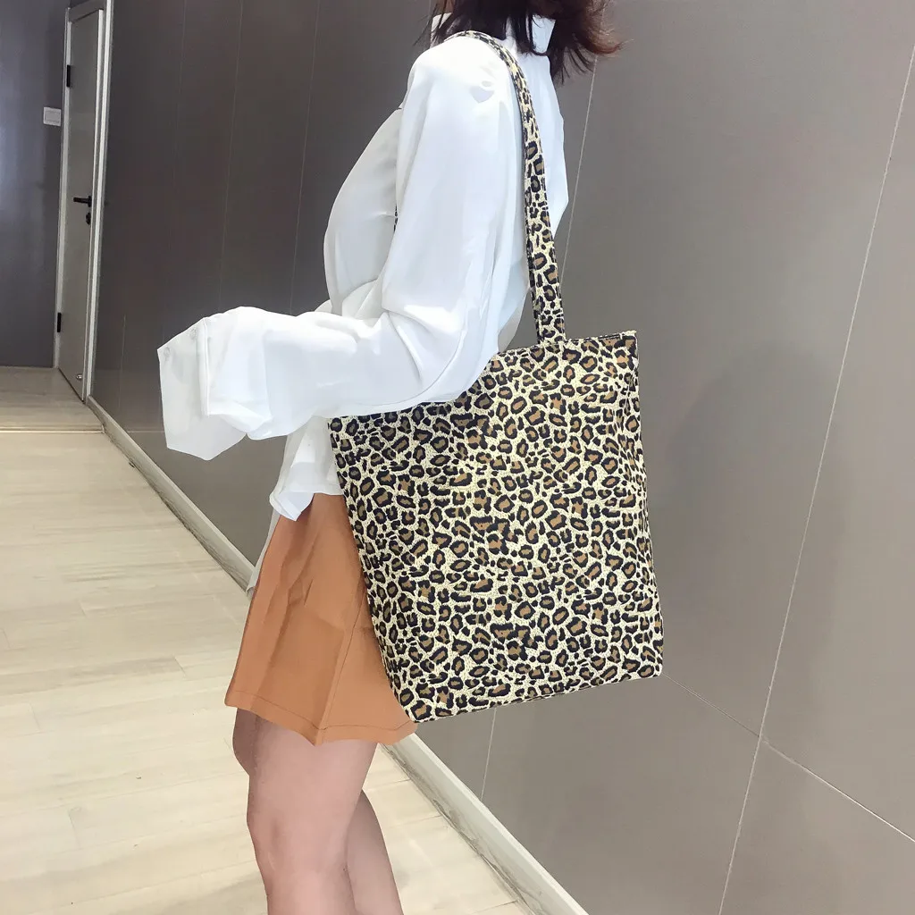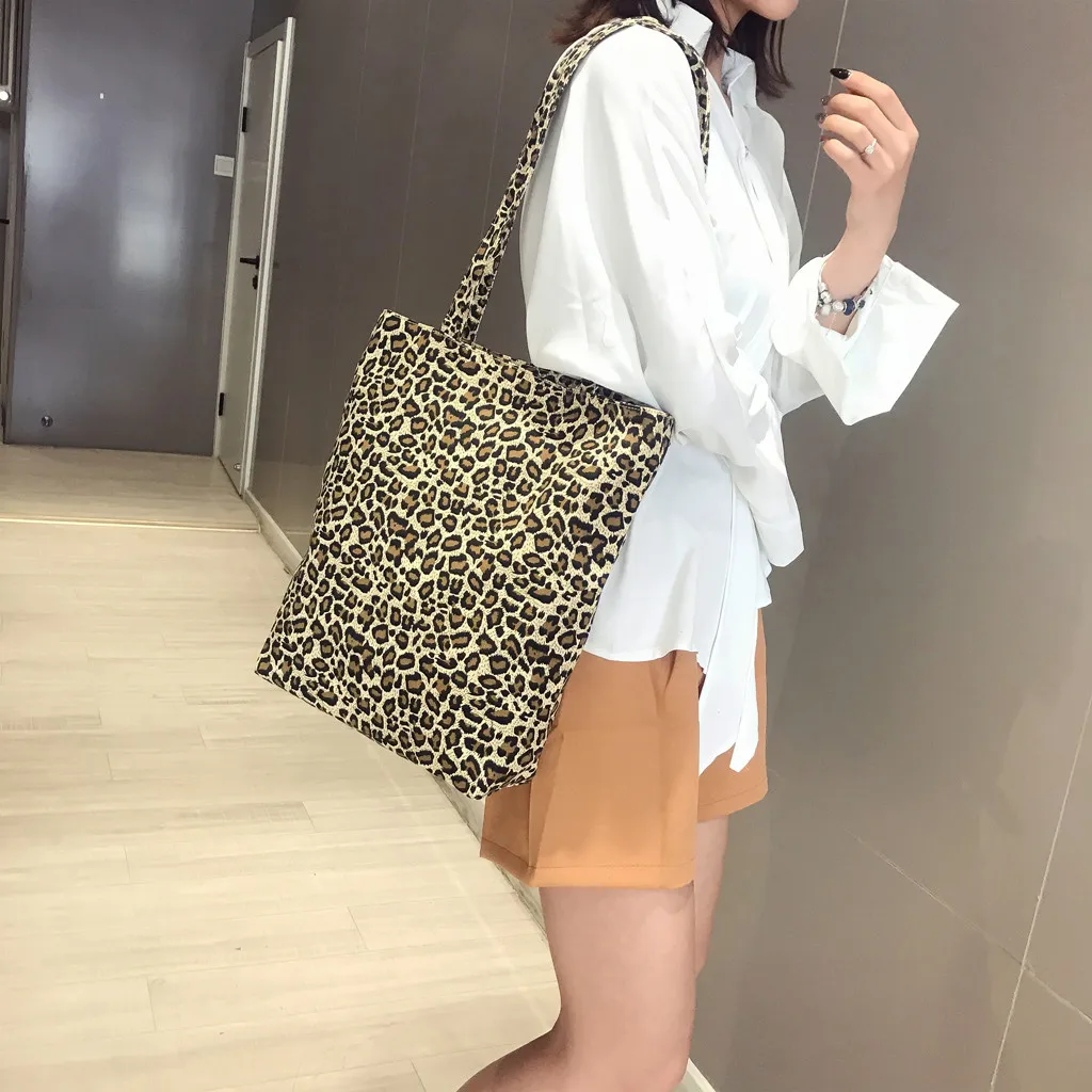 Женская Холщовая Сумка с леопардовым принтом, Женская Повседневная сумка на плечо, складные сумки для покупок, летняя пляжная сумка, женская сумка