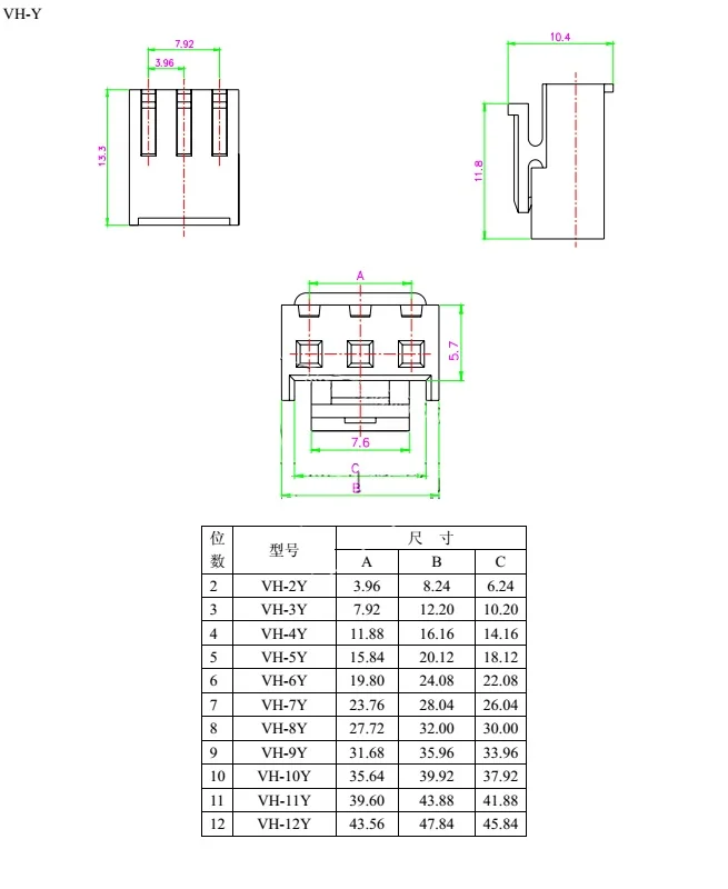Односторонний Разъем: одна сторона с VH3.96 разъемом для корпуса, другая сторона с Оловянным покрытием