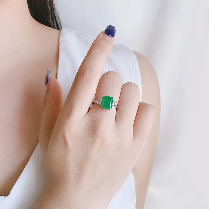Женское кольцо с изумрудом Bague Ringen 8*10 мм, серебряное ювелирное изделие 925 пробы, геометрические драгоценные камни, винтажный элегантный женский подарок, оптовая продажа
