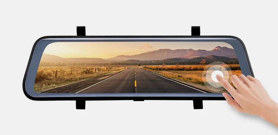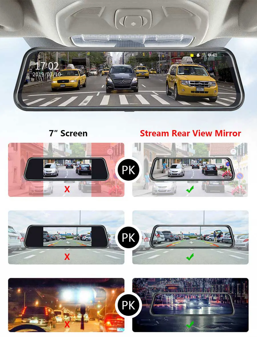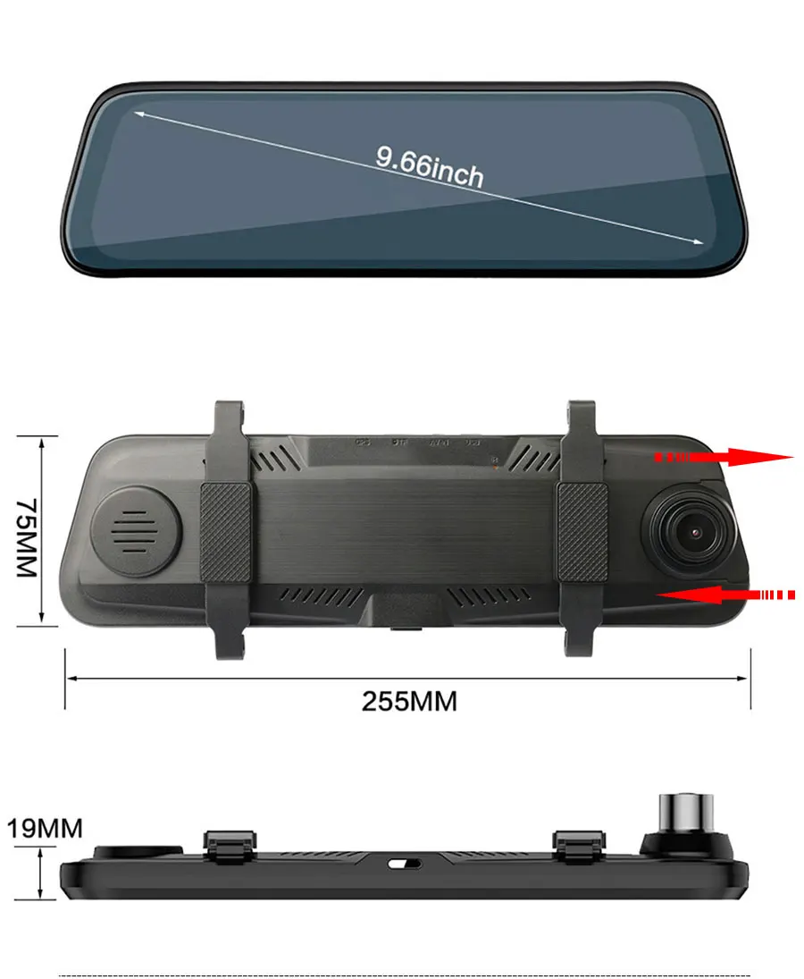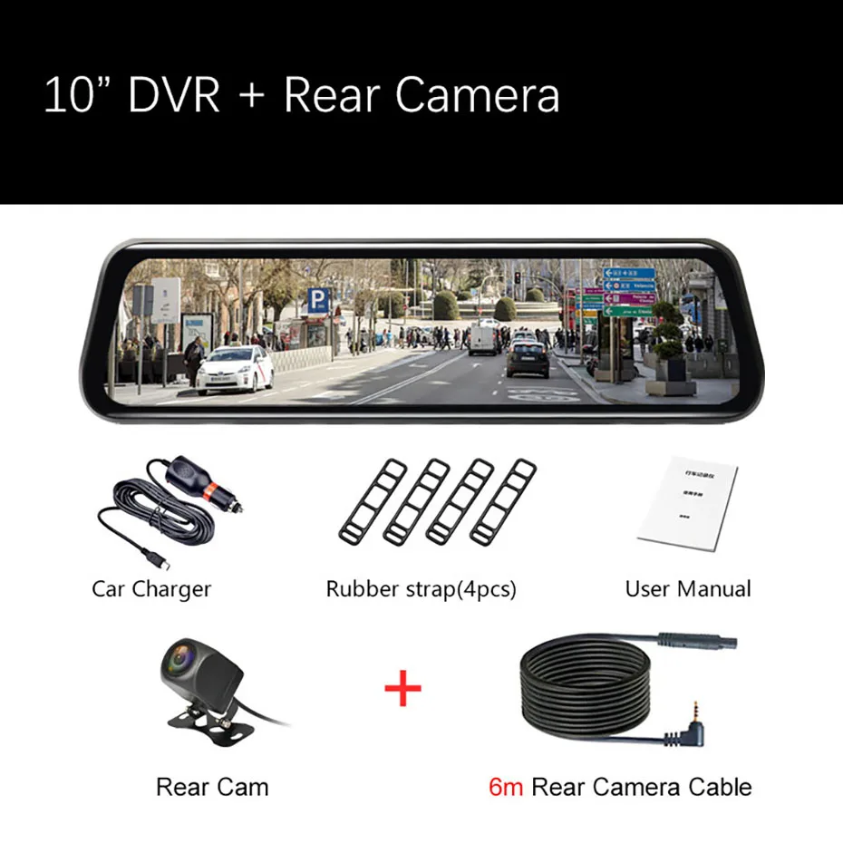Это потоковое медиа Зеркало DVR -10-дюймовый IPS сенсорный экран 2.5D. -С камерами заднего вида, объективом высокой четкости AHD