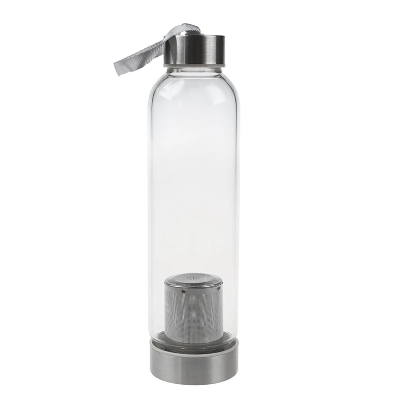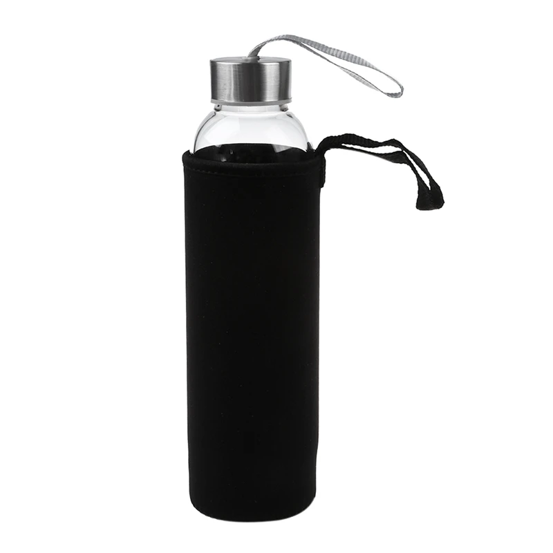 2x стеклянная Спортивная бутылка для воды с чайным фильтром, Защитная Сумка 550 мл, черный и розовый