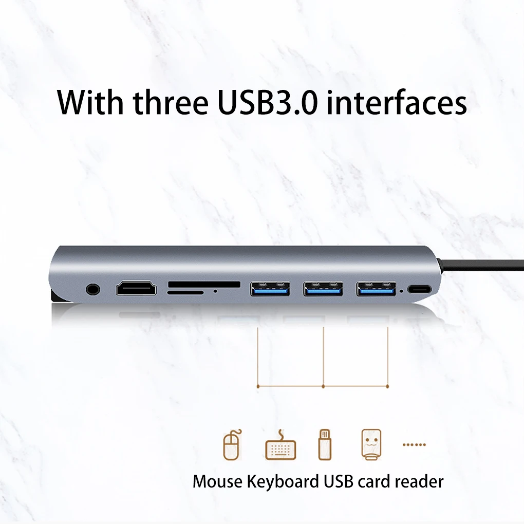 1. Этот 9 в 1 USB хаб можно подключить ноутбук, компьютер, монитор, проектор, и так далее, чтобы удовлетворить вашим различным потребностям