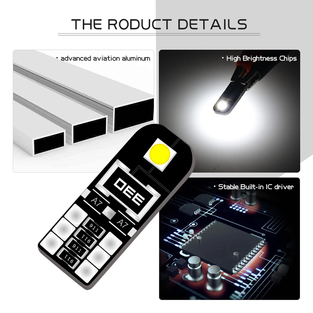 Разъем: T10 W5W 194 168 2825 Люмен: 200 лм/лампа Рабочее напряжение: 9-18 В постоянного тока Цветовая температура: 6500 к белый Светодиодные чипсеты: 2 шт. Super 3030 SMD Пункт продажи: без ошибок, модный внешний вид