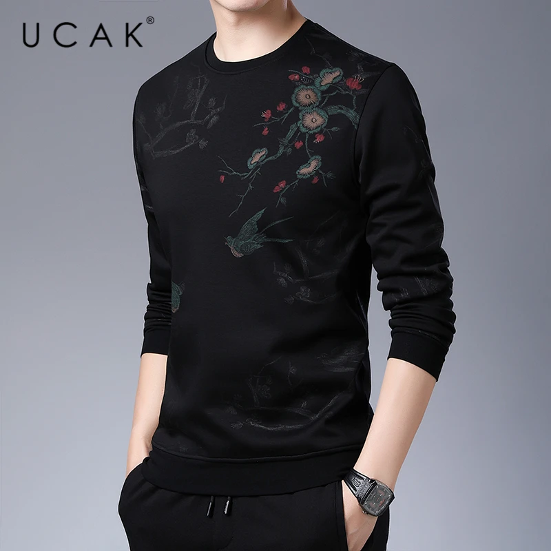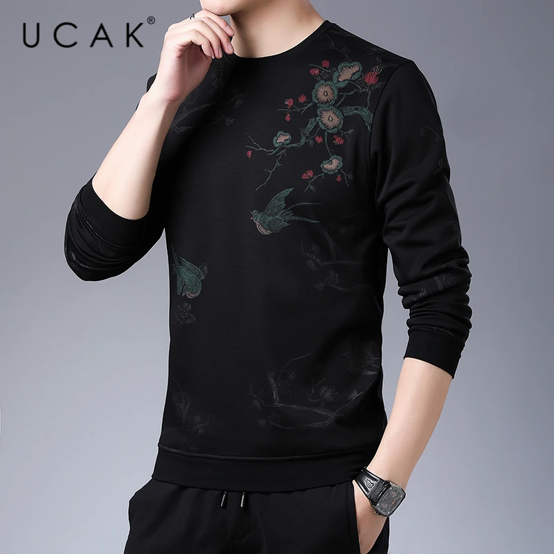 UCAK/Брендовые мужские толстовки; Homme; Сезон осень-зима; Модная толстовка с круглым вырезом и длинными рукавами; Уличная одежда; Толстовка в полоску; Мужская толстовка; U7018
