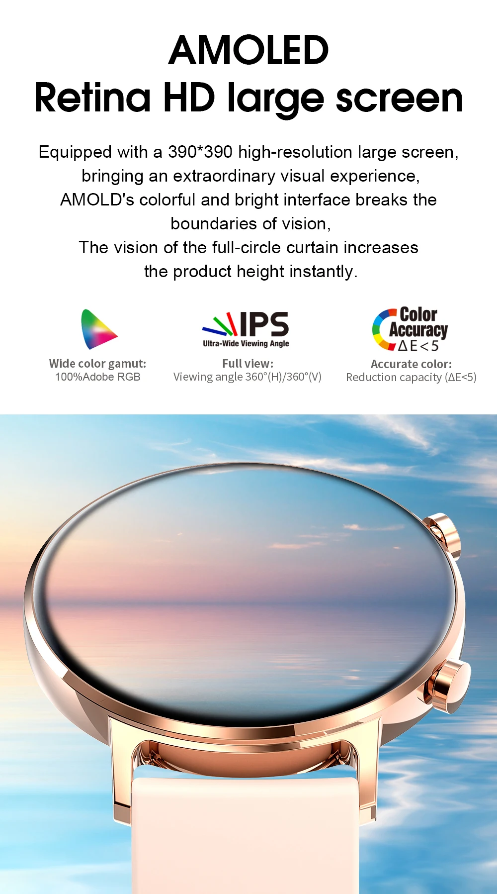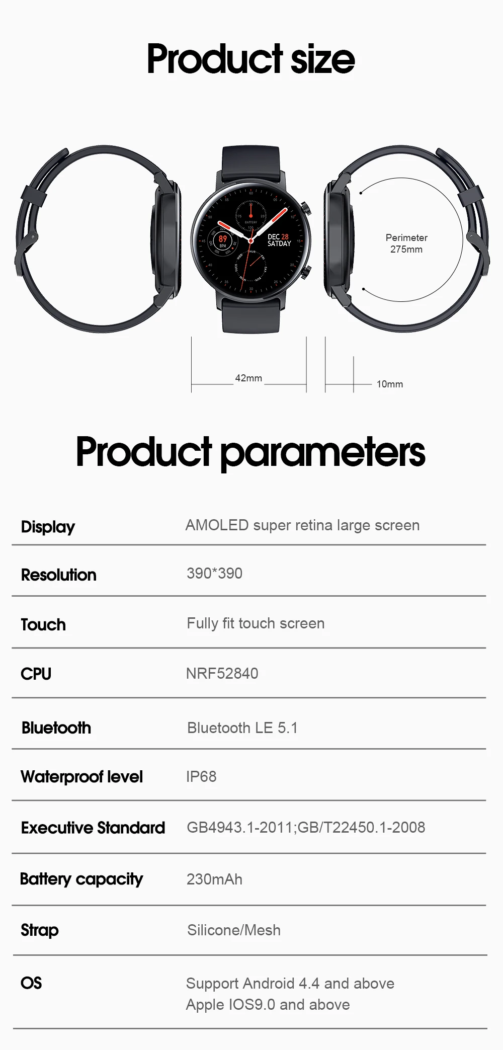 Главный экран: 1,2 дюймов AMOLED круглый экран, разрешение 390*390