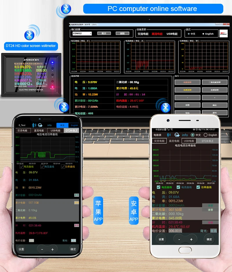 Battery capacity / DC power multi-function tester 2.4-inch high-definition wide color screen Bluetooth digital transmission curve version