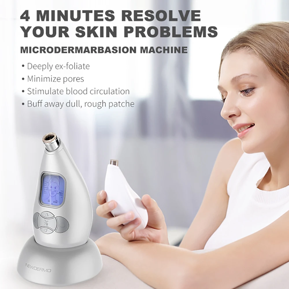 Эта машина использует революционную технологию обработки алмазов и всасывания для разделения нездорового слоя кожи. Это физический и механический способ решить различные проблемы с кожей и подходит для домашнего использования. Алмазная дермабразия Newdermo, Микродермабразия, отрицательное давление вызвано регулируемым насосом и алмазами медицинского класса за счет небольшого трения кожи, повреждения клеток, автоматически разряжаются. Это неглубокий Отшелушивающий способ физической дермабразии, устраняет недостатки химического отшелушивания и мягкой стимуляции, подходит для чувствительной кожи. А всасывание контролируется размером рабочей насадки, чтобы не оставлять рану после использования, пигментацию и покраснение кожи. Не будет летать из прозрачных частиц и остаточного явления на работе, весь процесс безопасен и чистый. Настаивайте на один раз в неделю, чтобы вы достигали удовлетворительных результатов в течение 60 дней.
