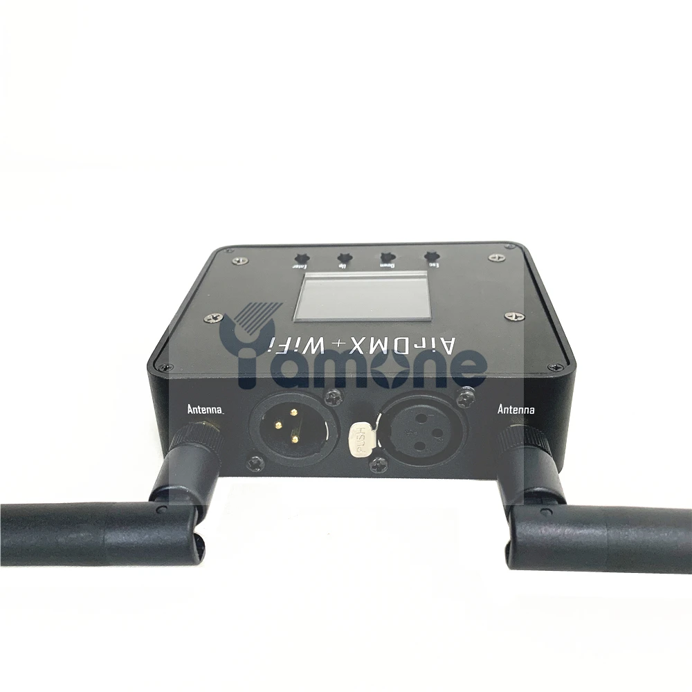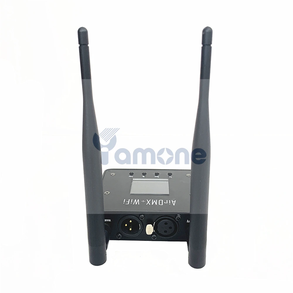 AirBox является центральной вещательной станцией для управления интеллектуальными диджейскими световыми продуктами по беспроводной DMX. Это с 2,4G беспроводным модулем приемопередатчика DMX и 2,4G WiFi модулем. Это означает, что он может не только подключаться к осветительной консоли, но также подключаться к смартфону и использовать приложение AirApp для управления.