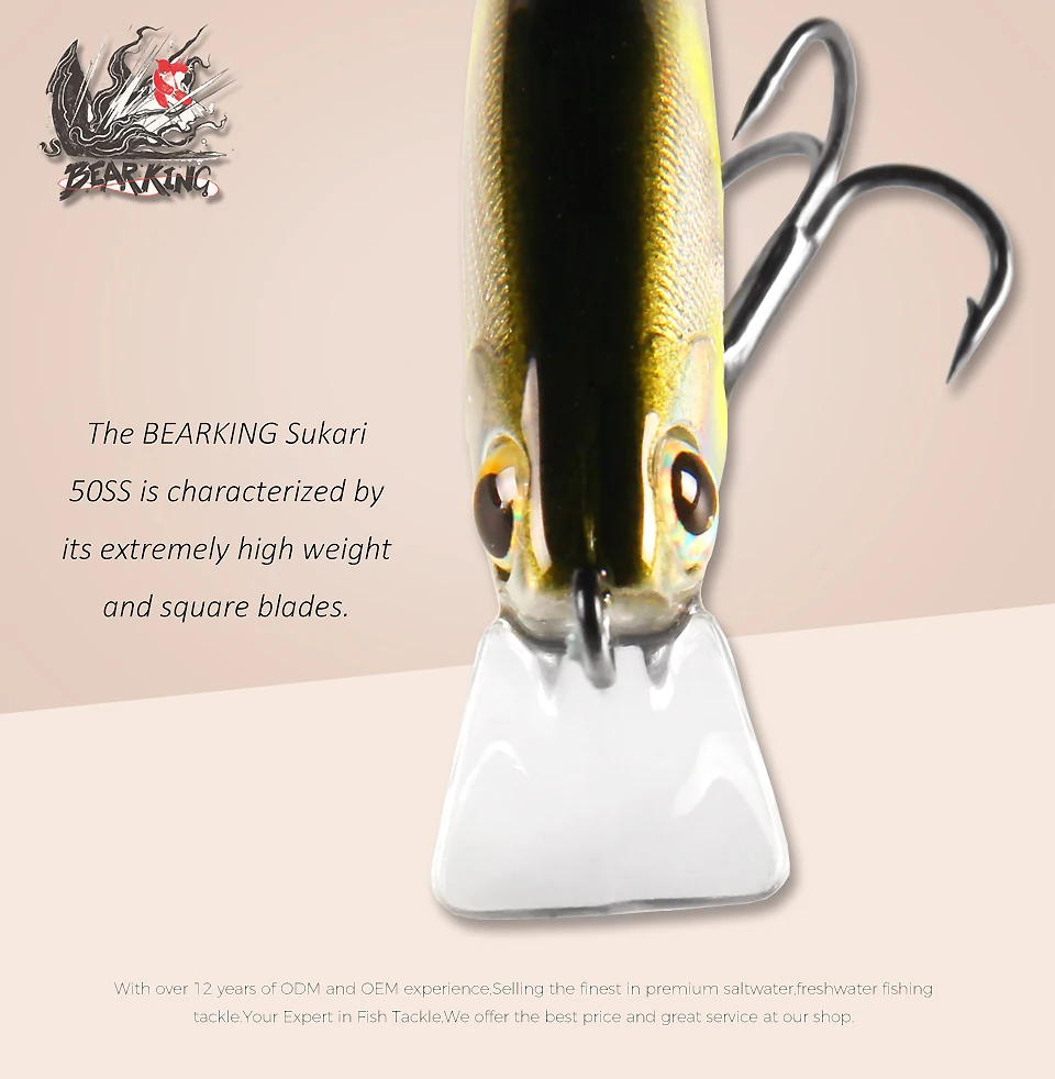 6.The detailed eyes are attached by hand after an approvedquality control inspection of the lure body.