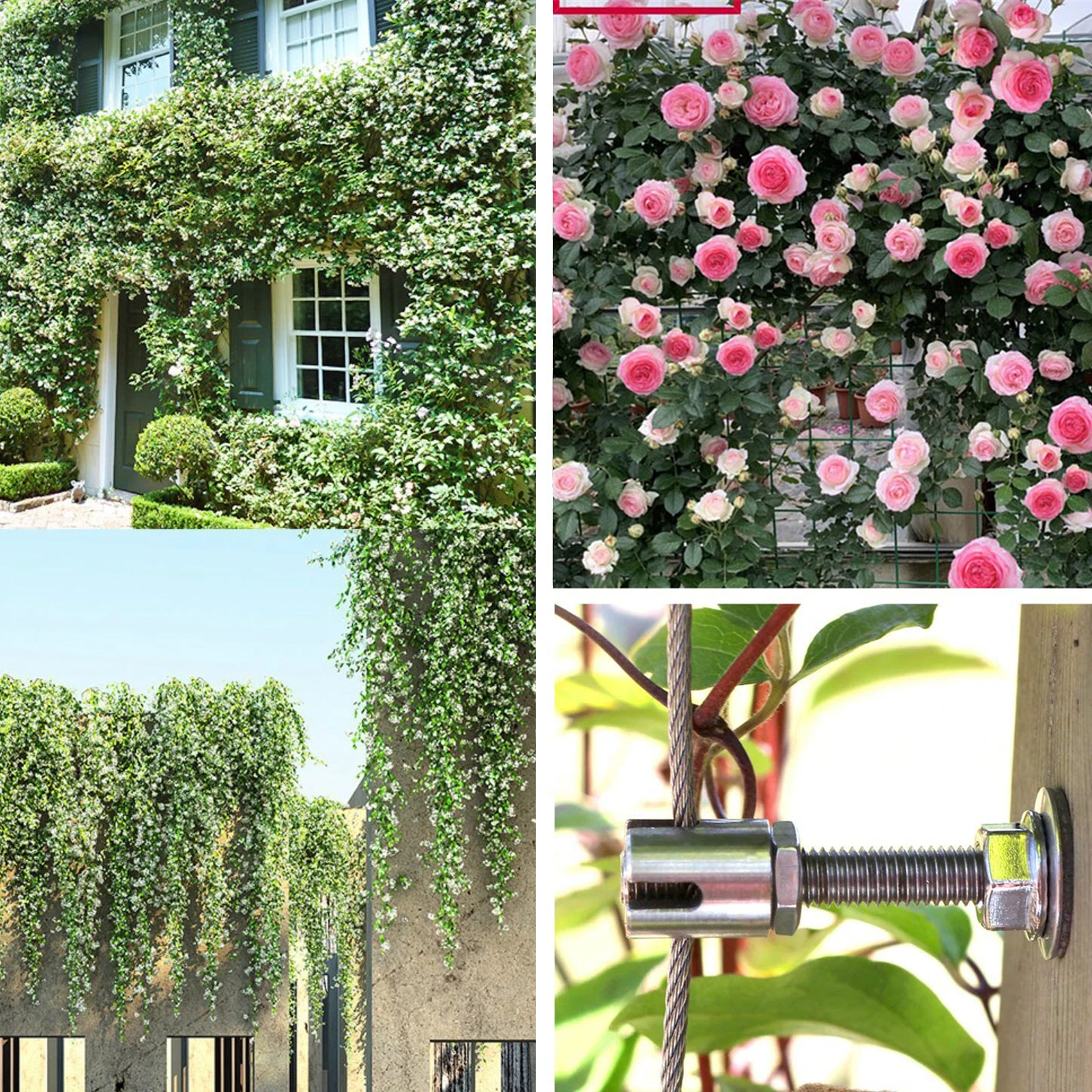 Трельяж из нержавеющей стали для альпинистских растений, профессиональная система в комплекте с настенными кронштейнами и стальным тросом 3 мм (8 держателей, 12 м Веревка)