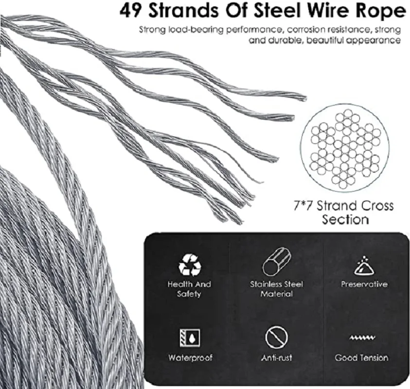 ✅Сверхмощный: тонкие веревки соревнований уже делают флоппи: наш трос из нержавеющей стали толщиной 3 мм (прочность на растяжение: 1570 Н/мм²) также переносит большие нагрузки-которые быстро вызваны растениями-без каких-либо проблем. Альпинистские растения находят больше поддержки. Тем не менее, веревка является гибкой благодаря 7x7 нитей.