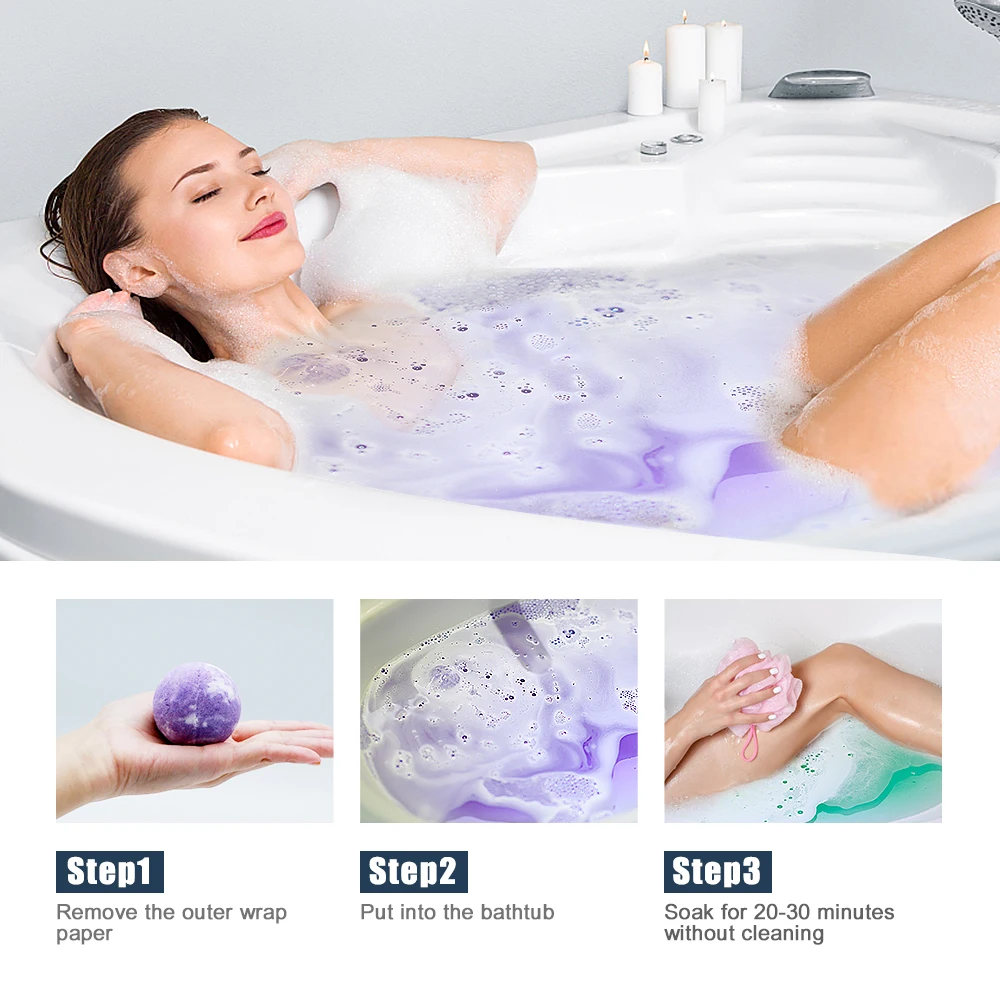 Шаг2: шар для ванны будет производить обильные пузыри в ванной. В водный вращается и рулонов, а также Бомбочки для ванны может быть растворенного во время купания;