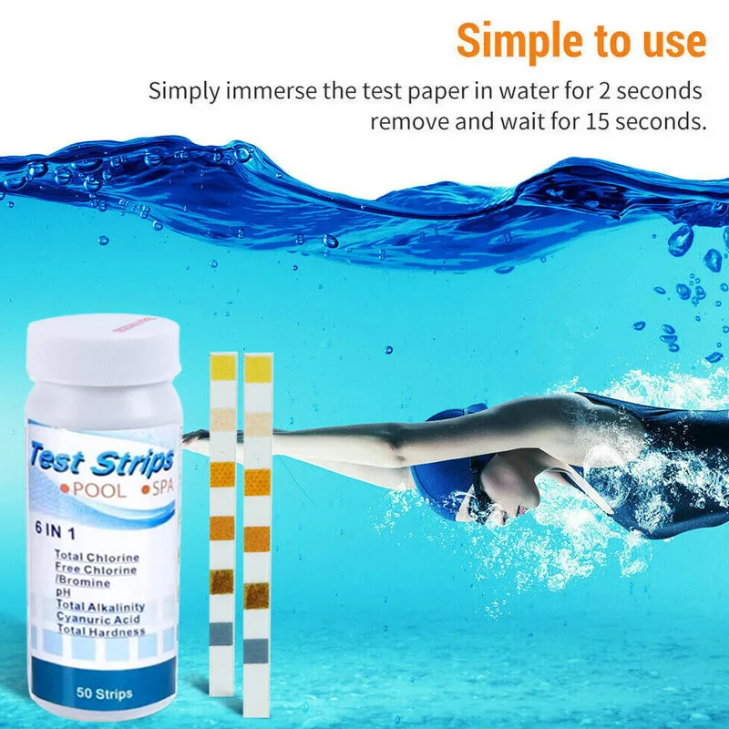 4.50 шт. химических тестовых полосок для бассейна были упакованы в легкодоступный контейнер.
