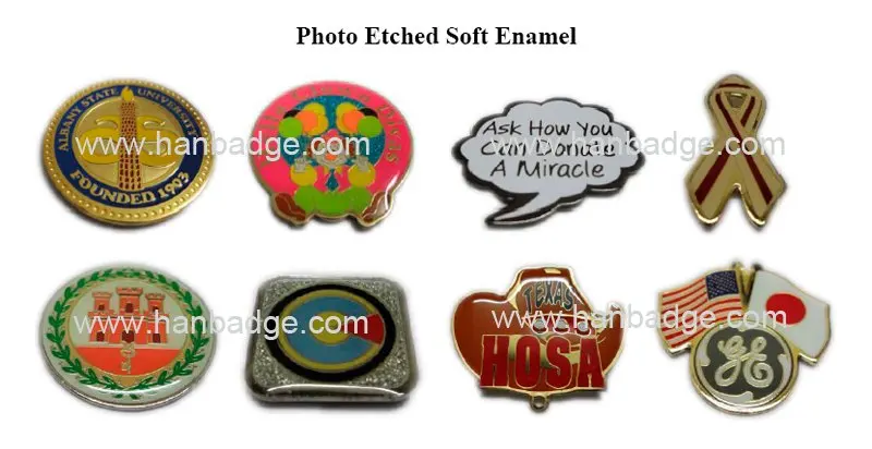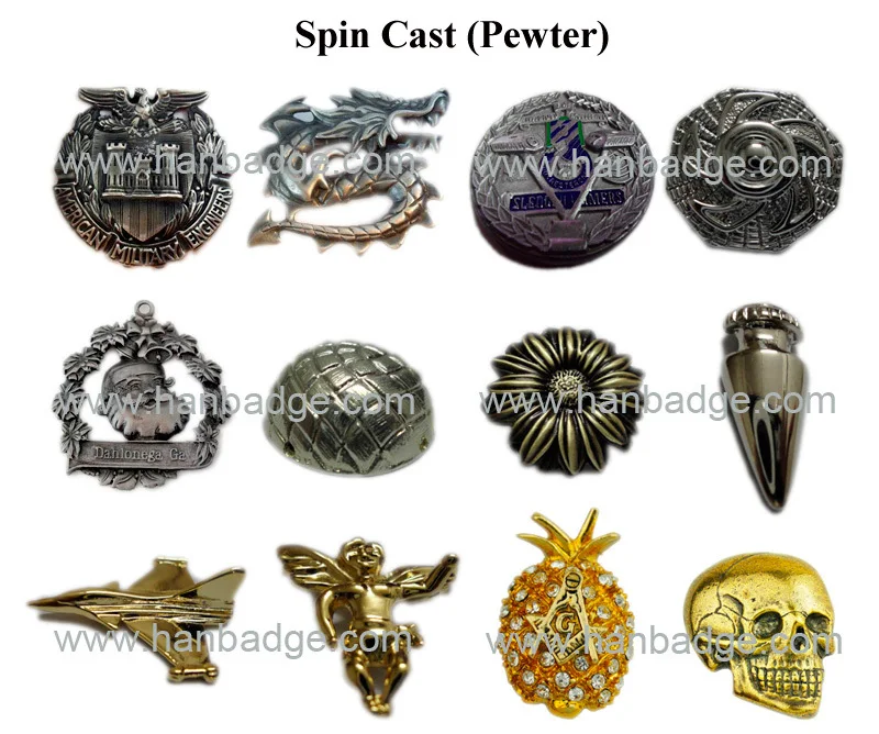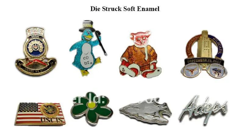 Мы являемся производителем и экспортером всех видов пользовательских дизайнерских отворот, значков, запонки, зажимы для галстука, медальоны, монеты, брелки, открывалки для бутылок, пряжки для ремня, кнопки и т. д. Различные процессы, начиная от жесткой эмали (мягкий шкаф), мягкой эмали, фото травления, печати, штамповки, Спин Литой оловянный, литой сплав цинка и т. Д.