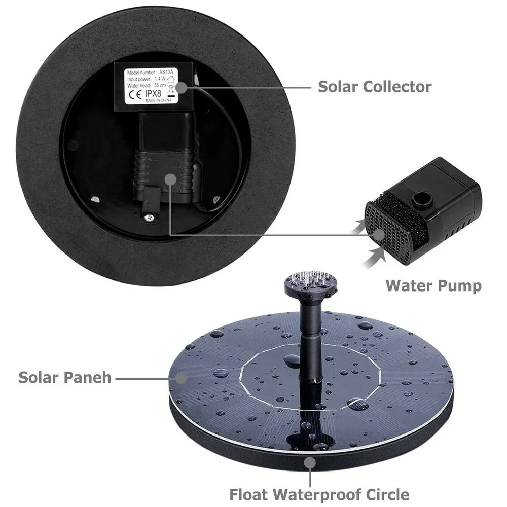 Он оснащен встроенным фильтром, встроенным низковольтным насосом и тонкой солнечной панелью.